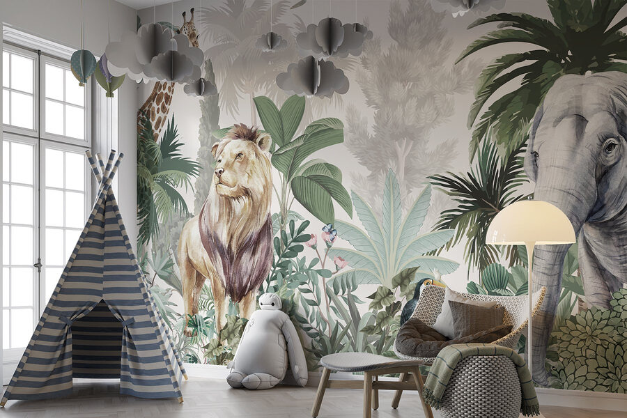 Przekształć swoją przestrzeń w krainę dzikiej przyrody dzięki tej oszałamiającej fototapecie ściennej z majestatycznym lwem, figlarnymi tukanami i łagodnym słoniem wśród bujnej zieleni. To jak przeniesienie kawałka dżungli do swojego domu. Wyobraź sobie, że siadasz wygodnie i pozwalasz, by żywe kolory ogarnęły cię, czując spokój, gdy natura rozkwita na twoich ścianach. Idealna do każdego pokoju pragnącego odrobiny przygody, ta fototapeta zaprasza do relaksu i odkrywania. Kto by pomyślał, że dekorowanie może przypominać mini safari? Każde spojrzenie może wywołać radość, zamieniając zwykłe dni w niezwykłe chwile. To rodzaj grafiki ściennej, która wywołuje uśmiech na twarzy, przenosząc dzikość bezpośrednio do przytulnego kącika.