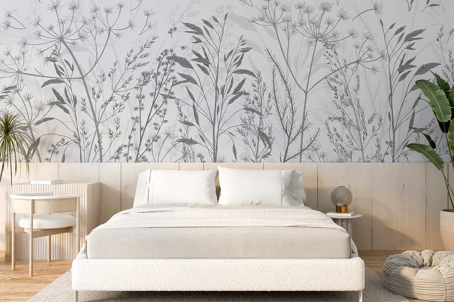 Przekształć swoją przestrzeń w spokojny azyl dzięki tej fototapecie ściennej z delikatnymi kwiatowymi sylwetkami w eleganckim monochromatycznym kolorze. Wyobraź sobie, że wchodzisz do pokoju, w którym czujesz się jak w zacisznym ogrodzie, wnosząc szept natury do wnętrza – bez potrzeby posiadania zielonego kciuka. Jest to idealne rozwiązanie do przytulnych kącików czytelniczych, a nawet stylowych jadalni.