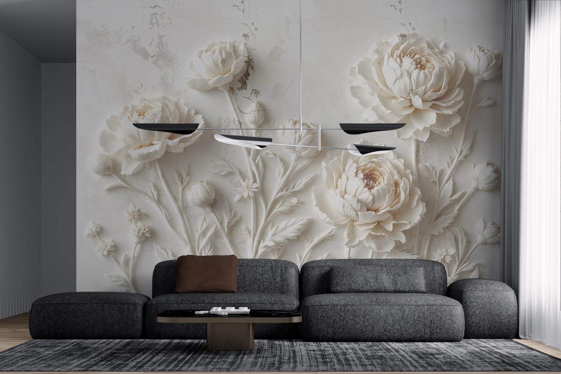 Przekształcenie przestrzeni nie jest łatwiejsze niż z tą piękną fototapetą ścienną z oszałamiającym wzorem białych kwiatów. Wyobraź sobie, że budzisz się w otoczeniu delikatnych piwonii pełnych uroku i elegancji. To jak przeniesienie ogrodu do domu bez uciążliwej konserwacji. Subtelny relief i misterne detale tworzą spokojną atmosferę, idealną do relaksu po długim dniu. Twoi znajomi pomyślą, że zatrudniłeś artystę, ale to będzie tylko twój mały sekret. Niezależnie od tego, czy znajduje się w przytulnym kącie, czy w jasnym korytarzu, ta fototapeta szepcze wyrafinowanie – nie wymaga przyjęcia herbacianego, ale z pewnością nadaje mu nastrój!