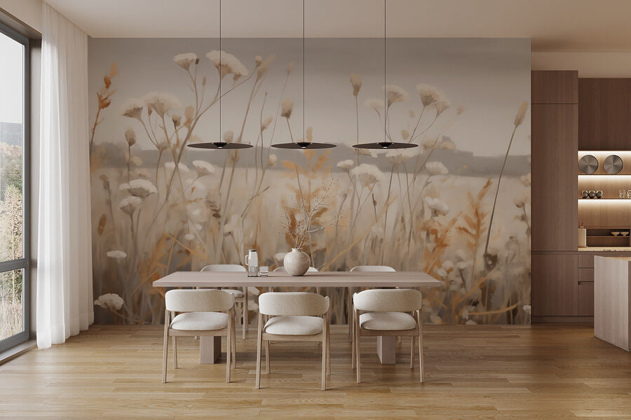 Przekształć dowolne pomieszczenie w przytulny azyl dzięki tej czarującej fototapecie ściennej “Pole kwiatów i trawy”. Wyobraź sobie, że budzisz się na spokojnym polu, gdzie polne kwiaty kołyszą się delikatnie na wietrze. Delikatne odcienie zapraszają do wnętrza odrobinę natury, zapewniając uspokajające tło dla codziennego życia. Idealna do salonu lub spokojnego gabinetu, ta fototapeta przynosi poczucie spokoju i ciepła; to tak, jakby mieć mini ucieczkę bezpośrednio na ścianie. Wyobraź sobie popijanie herbaty lub delektowanie się dobrą książką w otoczeniu tej pięknej scenerii – mowa o natychmiastowym relaksie!