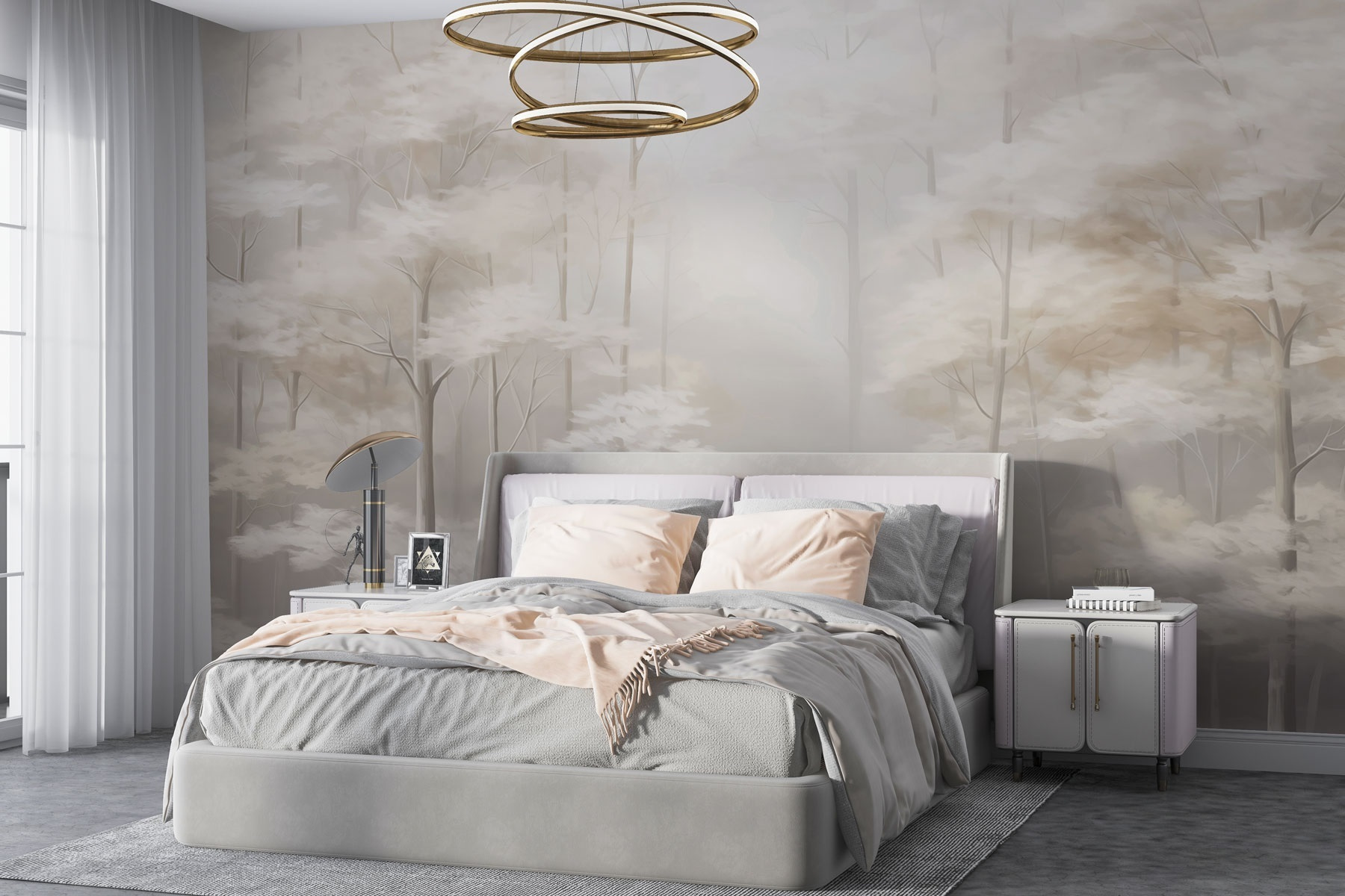 Wyobraź sobie, że wkraczasz do sennego, mglistego lasu, gdzie delikatne odcienie i łagodne drzewa zapraszają do wędrówki. Ta fototapeta jest jak powiew świeżego powietrza dla twojej przestrzeni – idealne połączenie spokoju natury i sztuki nowoczesnej. Wyobraź sobie przytulne wieczory spędzone w pokoju przekształconym przez to spokojne tło. To nie tylko mural; to nastrój. Niezależnie od tego, czy popijasz kawę, czy pracujesz nad najnowszym projektem, ta kojąca scena obiecuje uspokoić umysł i pobudzić inspirację. Dodatkowo, jest to świetny początek rozmowy dla wszystkich gości. Kto nie chciałby porozmawiać o pięknie natury w zaciszu własnego domu?
