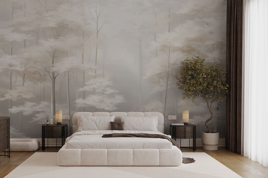 Wyobraź sobie, że wkraczasz do sennego, mglistego lasu, gdzie delikatne odcienie i łagodne drzewa zapraszają do wędrówki. Ta fototapeta jest jak powiew świeżego powietrza dla twojej przestrzeni – idealne połączenie spokoju natury i sztuki nowoczesnej. Wyobraź sobie przytulne wieczory spędzone w pokoju przekształconym przez to spokojne tło. To nie tylko mural; to nastrój. Niezależnie od tego, czy popijasz kawę, czy pracujesz nad najnowszym projektem, ta kojąca scena obiecuje uspokoić umysł i pobudzić inspirację. Dodatkowo, jest to świetny początek rozmowy dla wszystkich gości. Kto nie chciałby porozmawiać o pięknie natury w zaciszu własnego domu?