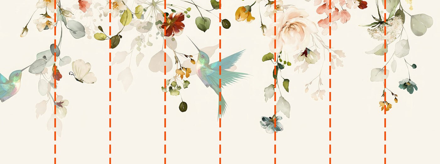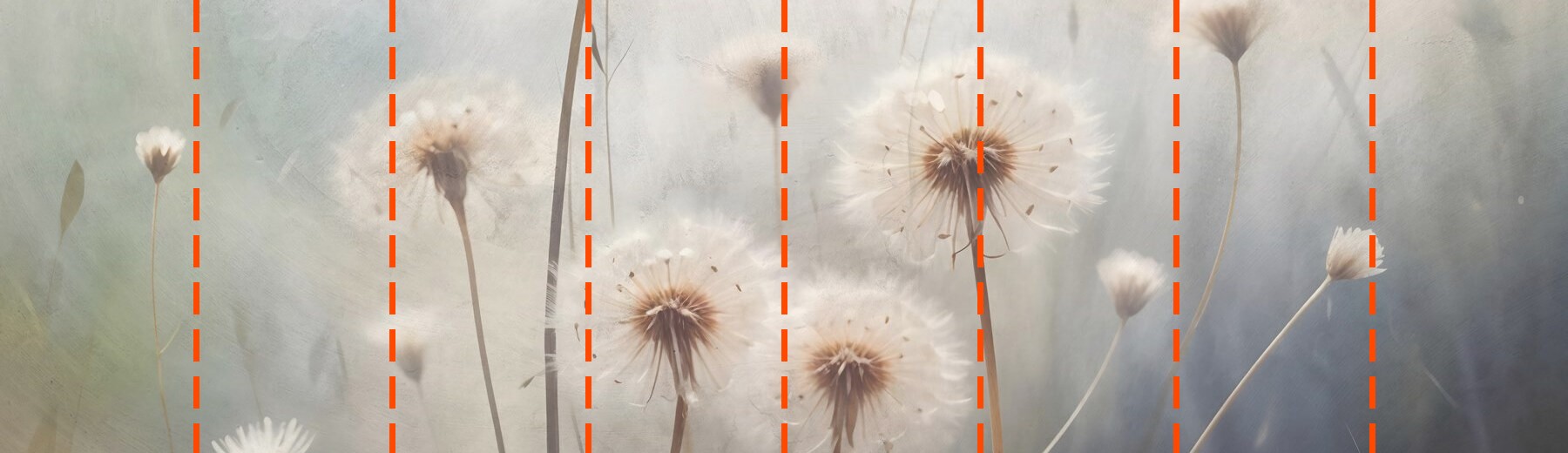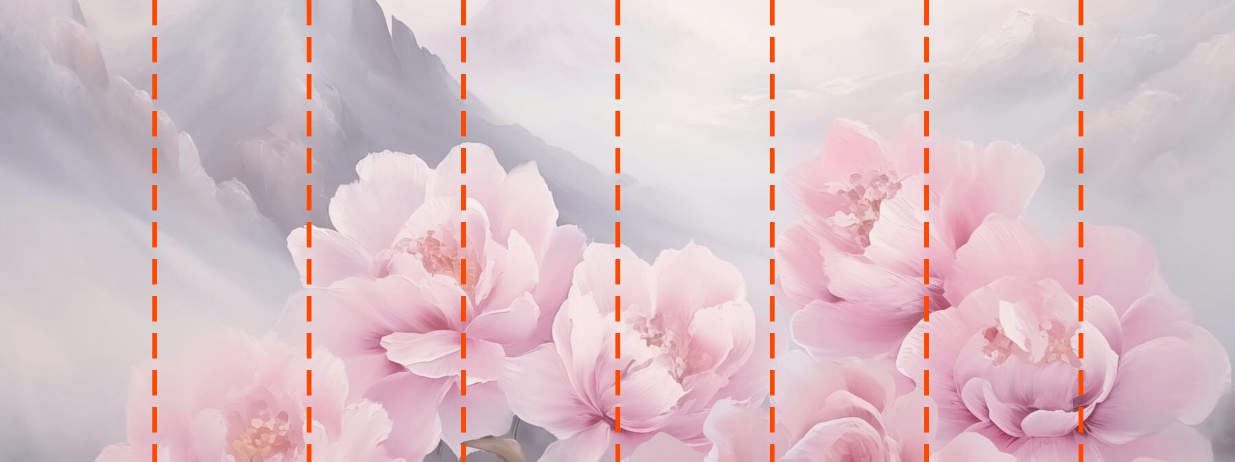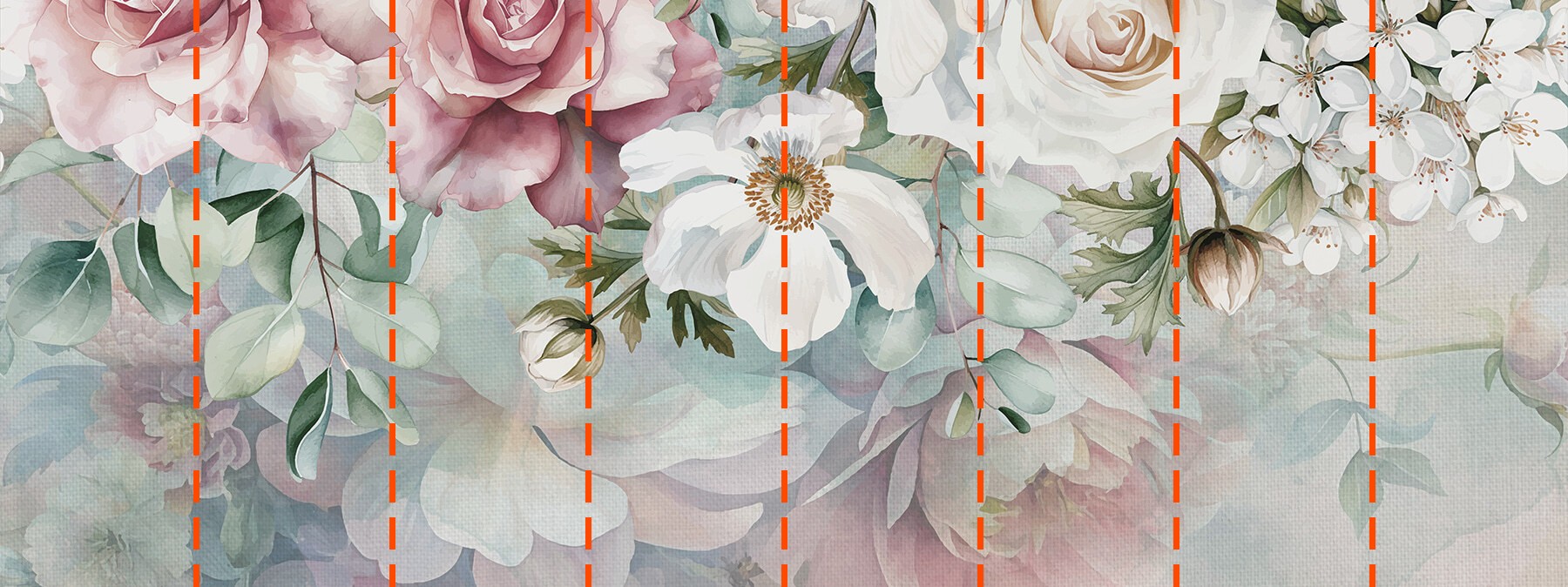 Tapeta zostanie przygotowana zgodnie z wymiarami podanymi w procesie zamawiania. Płótno zostanie podzielone na wygodne sekcje, każda o szerokości do 50 cm.