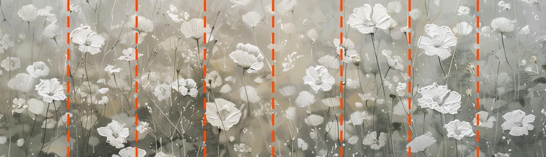 Dostosowujemy tapetę na podstawie wymiarów. Wystarczy określić rozmiar ściany, którą chcesz wytapetować podczas składania zamówienia. Następnie wyprodukujemy i wyślemy tapetę w określonych wymiarach, podzieloną na wygodne pasy o szerokości do 50 cm.