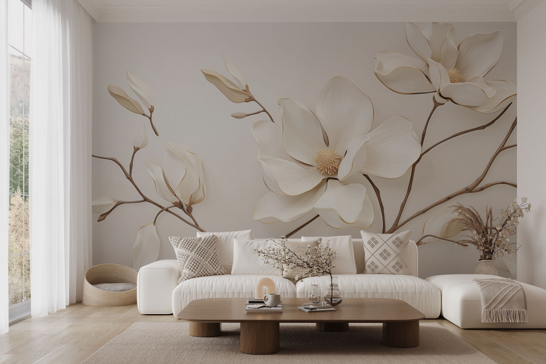 Przekształcenie pustej ściany w spokojną przestrzeń jest tak proste, jak ta oszałamiająca fototapeta z białymi kwiatami. Wyobraź to sobie – te wdzięczne kwiaty wyciągające się, niemal błagające o podziwianie. To jak zaproszenie natury do wnętrza bez uciążliwych pyłków! Gdy światło słoneczne tańczy po delikatnie pomalowanych płatkach, pokój wydaje się lżejszy, bardziej przewiewny – to powiew świeżego powietrza. Idealna do przytulnego salonu lub spokojnej sypialni, ta fototapeta to nie tylko dekoracja; opowiada historię elegancji i spokoju. Wyobraź sobie popijanie herbaty z przyjaciółmi, będąc otoczonym tą spokojną atmosferą. Piękno tkwi nie tylko w projekcie, ale także w tym, jak sprawia, że przestrzeń jest żywa, a jednocześnie spokojna. Dlaczego więc czekać? Niech ten mebel rozkwitnie w Twoim domu!