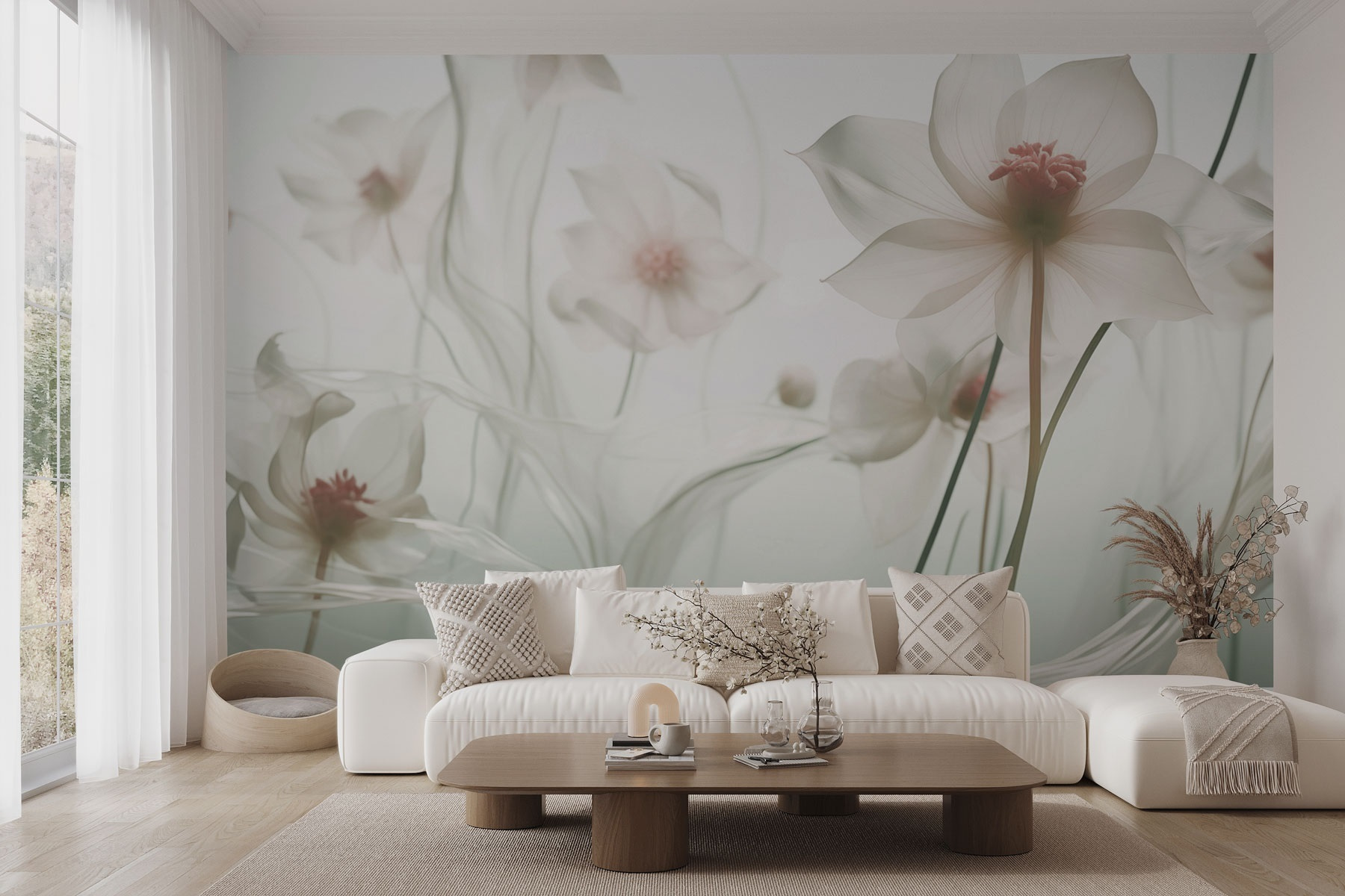 Przekształć zwykłą ścianę w senną ucieczkę dzięki “Szeptom delikatnej kwiatowej elegancji”. Ta fototapeta przypomina delikatny powiew wiatru w kwitnącym ogrodzie, miękkie kwiaty tańczące pośród czystych mgiełek. Wyobraź sobie wędrówkę przez spokojną oazę podczas popijania ziołowej herbaty – błogie, prawda? Kolory są subtelne, tworząc uspokajającą atmosferę, która sprawia, że wzdychasz z zadowolenia. Idealny do przytulnych zakątków, a nawet do niewygodnego korytarza, który potrzebuje trochę miłości. Zaprasza ciepło, piękno i odrobinę kaprysu do każdej przestrzeni, sprawiając, że każde spojrzenie staje się chwilą radości. Kto by pomyślał, że kwiaty mogą szeptać tak słodko?