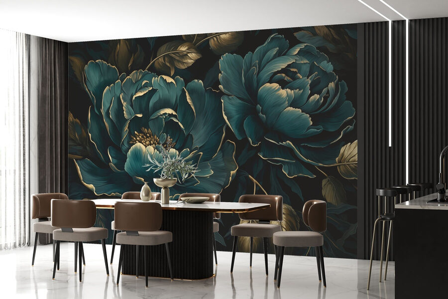 Przekształć dowolny pokój w tętniącą życiem oazę dzięki tej oszałamiającej fototapecie z pięknymi kwiatami w głębokich odcieniach. Wyobraź sobie, że wchodzisz do pomieszczenia, w którym otaczają cię duże piwonie i bujne liście, zapraszając do środka odrobinę ogrodu. To jak osobista botaniczna ucieczka każdego dnia! Kolory są odważne i bogate, wywołując uczucie ciepła i radości. Idealne na ścianę, która potrzebuje odrobiny miłości, a może po prostu na pogawędkę z przyjaciółką przy kawie. Kto nie uśmiechnąłby się w pokoju ozdobionym tak dramatycznymi kwiatami?
