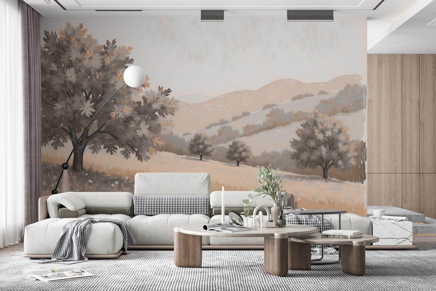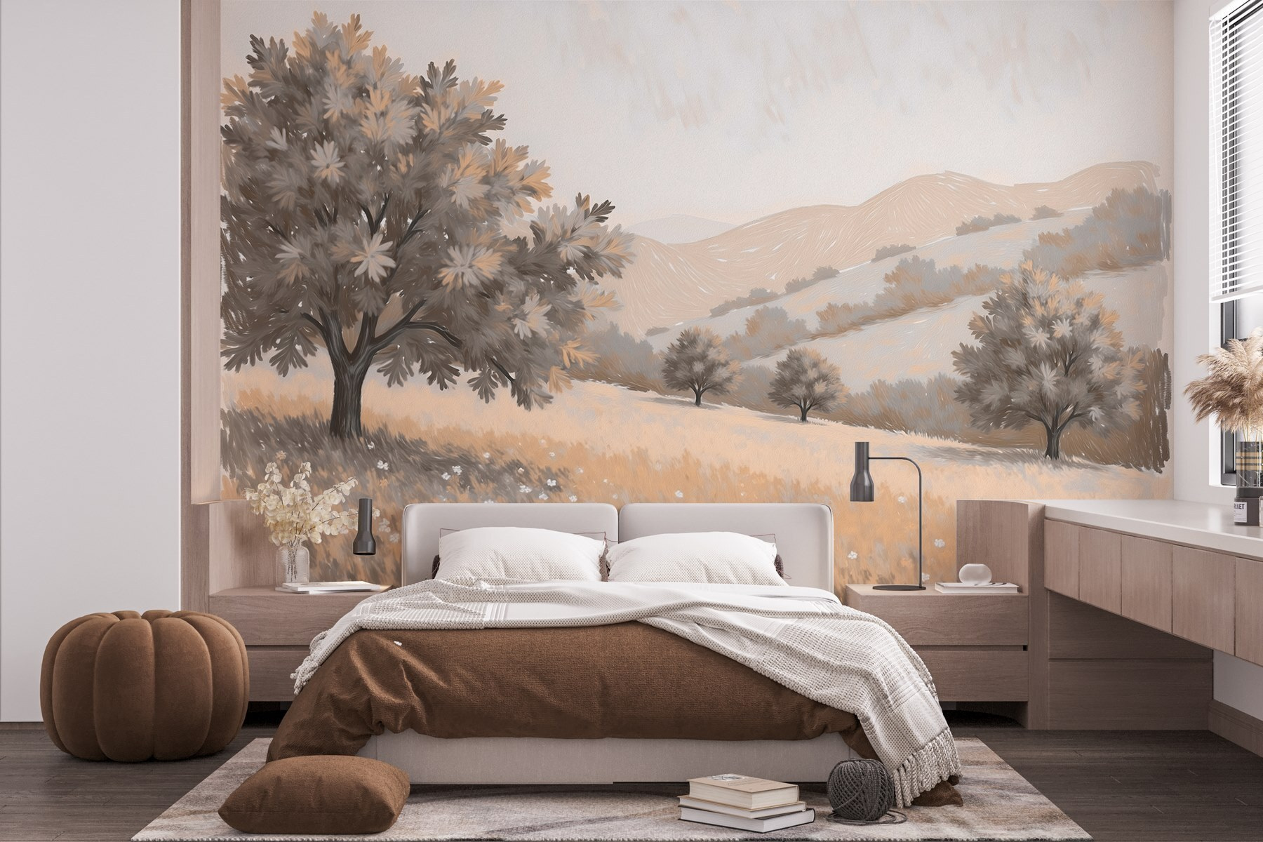 Przekształć swoją przestrzeń za pomocą uspokajającej fototapety przedstawiającej krajobraz usiany drzewami i wzgórzami. To jak wprowadzenie delikatnej bryzy do wnętrza – wyobraź sobie, że odpoczywasz z kawą, czując się jak na spokojnej łące. Ta fototapeta przenosi cię do świata, w którym troski znikają. Subtelne odcienie sprawiają, że jest przytulna, a kształty odległych wzgórz pobudzają marzenia. Idealna do salonu, sypialni, a nawet spokojnego zakątka – to dekoracyjny odpowiednik ciepłego uścisku. Dlaczego nie pozwolić, by urok natury otulił twoje ściany? To z pewnością lepsze niż wpatrywanie się w zwykłą farbę!