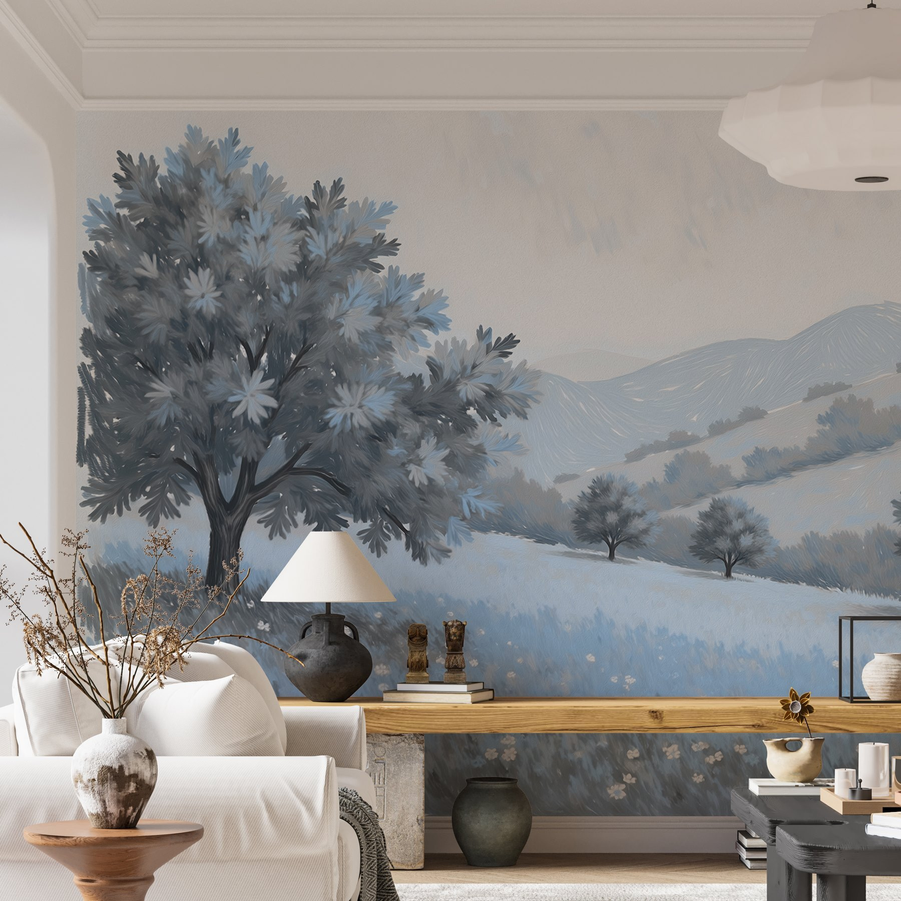 Przekształć pustą ścianę w spokojną ucieczkę dzięki tej oszałamiającej fototapecie przedstawiającej senny krajobraz drzew i kwiatów. Wyobraź sobie delikatną bryzę, skąpane w słońcu wzgórza w tle i symfonię kolorów natury. Idealnie nadaje się do rozjaśnienia każdego pomieszczenia lub stworzenia przytulnego kącika do czytania, w którym można stracić poczucie czasu. Wyobraź sobie kogoś zwijającego się z filiżanką herbaty, wpatrującego się w fototapetę i czującego natychmiastowy spokój. To jak przeniesienie odrobiny wspaniałej przyrody do wnętrza bez konieczności noszenia zabłoconych butów! Ta fototapeta to nie tylko dekoracja; to mały kawałek spokoju, który czeka, aby się wydarzyć.