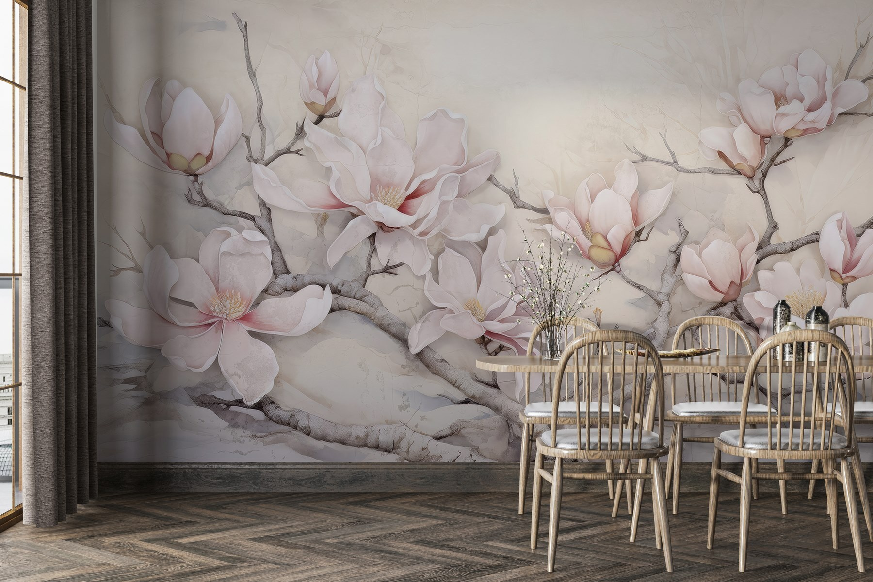 Przekształć dowolną przestrzeń w kwitnący raj dzięki tej oszałamiającej fototapecie ściennej z kwiatami na gałęzi. Wyobraź sobie, że po długim dniu wracasz do domu, a na powitanie wyciągają się do ciebie delikatne różowe płatki, jakby ogród postanowił przenieść się do środka. Każdy kwiat wydaje się szeptać historie o wiośnie, tworząc delikatny, podnoszący na duchu klimat idealny do przytulnych zakątków lub tętniących życiem obszarów mieszkalnych. To jak własne dzieło sztuki natury, które ożywia ściany. Kto nie chciałby odrobiny magii każdego dnia? Wystarczy wyobrazić sobie siebie popijającego kawę i rozkoszującego się pięknem – czysta błogość!