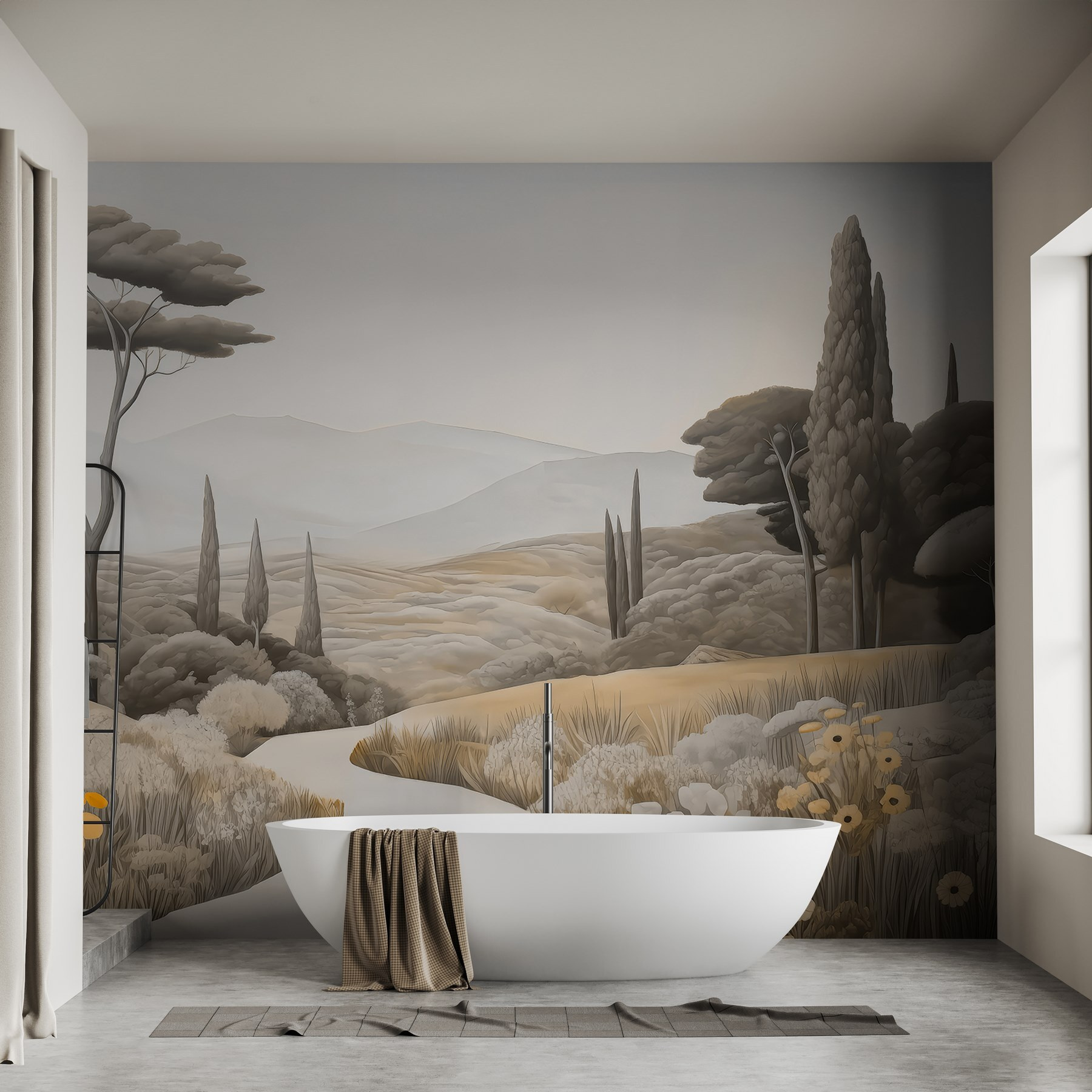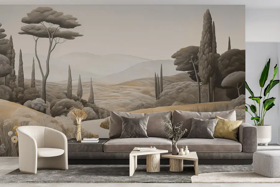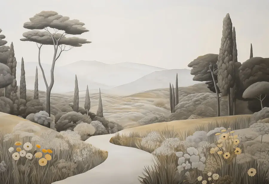 Odmień swoją przestrzeń dzięki tej oszałamiającej fototapecie ściennej “Krajobraz z krętą drogą i drzewami”. Ożywia ona spokojną wiejską okolicę, zapraszając naturę do wnętrza bez bałaganu na zewnątrz. Wyobraź sobie popijanie kawy w leniwą niedzielę, patrząc na łagodne wzgórza i kołyszące się drzewa – to jak mini-wakacje bezpośrednio na ścianie. Idealna na te senne chwile, ta fototapeta otula pokój ciepłymi, ziemistymi tonami i delikatnymi detalami, które sprawiają, że chce się głęboko oddychać. Szepcze relaks, przypominając o spokojnych spacerach pod gołym niebem. Wyobraź sobie rozmowy, które może wywołać lub spokojne wibracje, które przynosi – co za słodki akcent dla każdego zakątka!