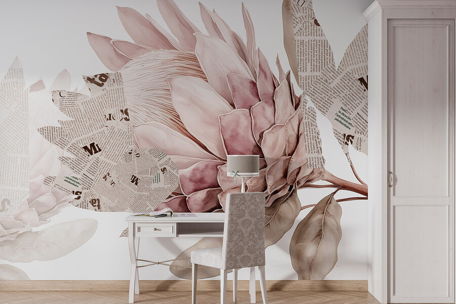 Wnieś odrobinę natury do wnętrza dzięki tej czarującej fototapecie ściennej, na której zachwycające kwiaty przeplatają się z elementami gazet. To jak połączenie przyjęcia w ogrodzie i galerii sztuki na ścianie. Wyobraź sobie, że popijasz kawę, podziwiając, jak delikatne płatki tańczą z pogrubionym tekstem, wywołując rozmowy i może trochę marzeń. Ta fototapeta może zmienić każde pomieszczenie w przytulny zakątek, który jest żywy, a jednocześnie stylowy. Szepcze do duszy, zapraszając do ciepła i odrobiny kaprysu. Idealna do pomieszczeń, które pragną odrobiny osobowości i uroku, jest delikatnym przypomnieniem, że piękno można znaleźć w nieoczekiwanych miejscach.