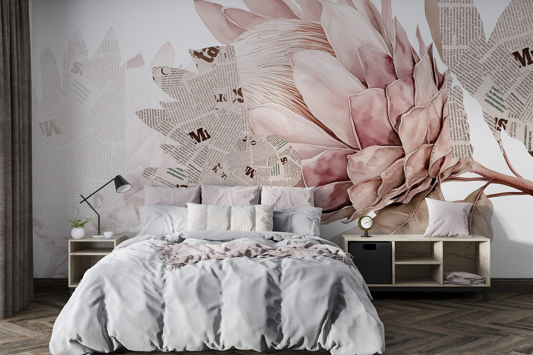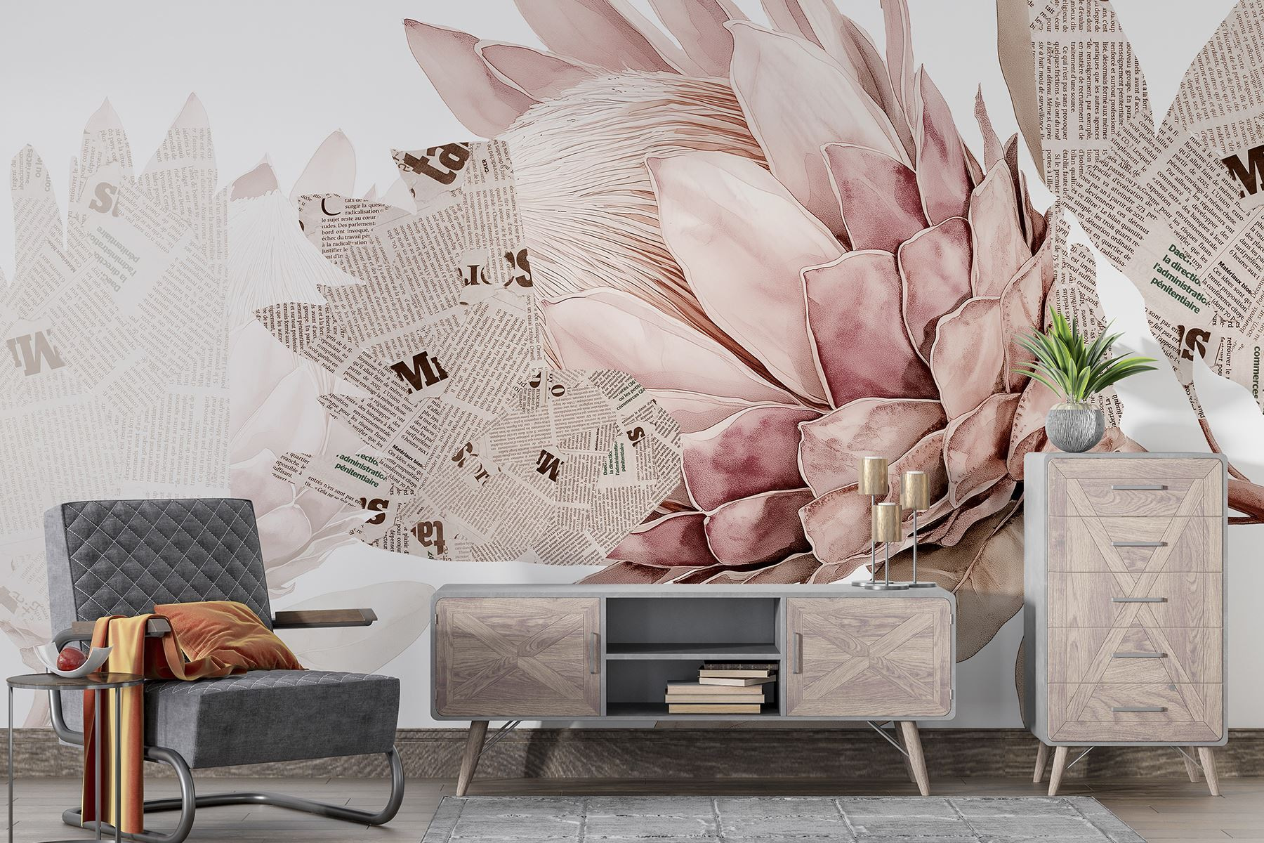 Wnieś odrobinę natury do wnętrza dzięki tej czarującej fototapecie ściennej, na której zachwycające kwiaty przeplatają się z elementami gazet. To jak połączenie przyjęcia w ogrodzie i galerii sztuki na ścianie. Wyobraź sobie, że popijasz kawę, podziwiając, jak delikatne płatki tańczą z pogrubionym tekstem, wywołując rozmowy i może trochę marzeń. Ta fototapeta może zmienić każde pomieszczenie w przytulny zakątek, który jest żywy, a jednocześnie stylowy. Szepcze do duszy, zapraszając do ciepła i odrobiny kaprysu. Idealna do pomieszczeń, które pragną odrobiny osobowości i uroku, jest delikatnym przypomnieniem, że piękno można znaleźć w nieoczekiwanych miejscach.