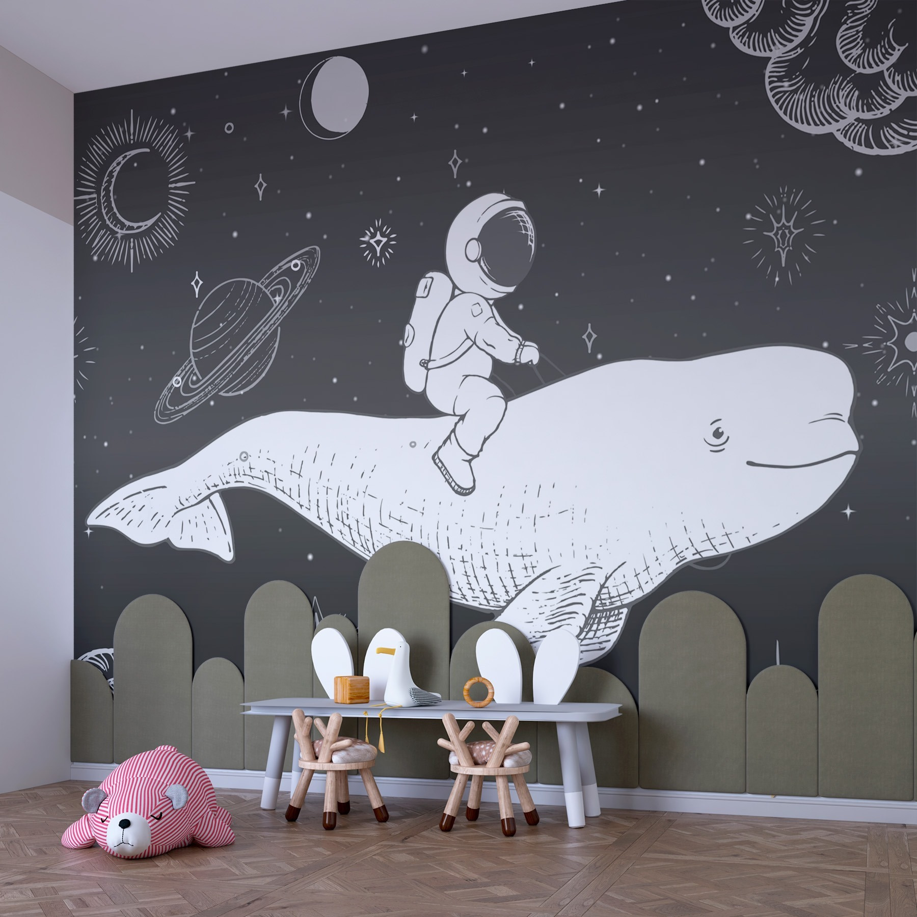 Odmień każdą przestrzeń dzięki tej kapryśnej fototapecie ściennej przedstawiającej żądnego przygód astronautę jadącego na wielorybie przez kosmiczną krainę czarów. Wyobraź to sobie: spokojny salon lub plac zabaw dla dzieci staje się portalem do wyobraźni, wywołując radość za każdym razem, gdy ktoś tam wchodzi. Zabawna mieszanka życia oceanu i rozgwieżdżonego nieba zachęca do marzeń, tak jakby sprzyjała tajnej rozmowie między morzem a gwiazdami. To nie tylko dekoracja; to codzienne przypomnienie o odkrywaniu niekonwencjonalnych rozwiązań. Więc śmiało – dodaj odrobinę cudowności do tych ścian i pozwól wyobraźni popłynąć!