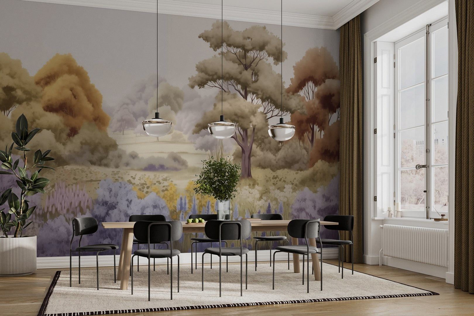Odmień swoją przestrzeń dzięki tej czarującej fototapecie ściennej, przedstawiającej senny krajobraz wypełniony drzewami i kwitnącymi kwiatami. Wyobraź sobie, że wchodzisz do spokojnego ogrodu za każdym razem, gdy na niego spojrzysz. Delikatne kolory przywołują łagodny spokój, idealny do relaksu po długim dniu. Wyobraź sobie kogoś popijającego herbatę, z fototapetą jako tłem, natychmiast podnoszącą przytulną atmosferę. To jak przeniesienie kawałka natury do wnętrza, bez uciążliwych pszczół! Niezależnie od tego, czy jest to sypialnia, salon, czy nawet kreatywny kącik, ta fototapeta bez wysiłku wywołuje radość i zaprasza do wyciszenia, sprawiając, że każda chwila wydaje się nieco bardziej wyjątkowa. Kto nie chciałby wygrzewać się w takim pięknie?