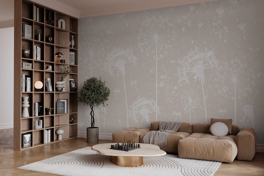 Wyobraź to sobie: spokojna przestrzeń przekształcona przez delikatne piękno białych kwiatów mniszka lekarskiego. Ta fototapeta to nie tylko dekoracja; to jak wniesienie delikatnej bryzy do wnętrza, szepczącej historie o lekkości i marzeniach. Dzięki tym delikatnym kwiatom umieszczonym na ciepłym tle, każde spojrzenie jest jak mała ucieczka na łono natury.