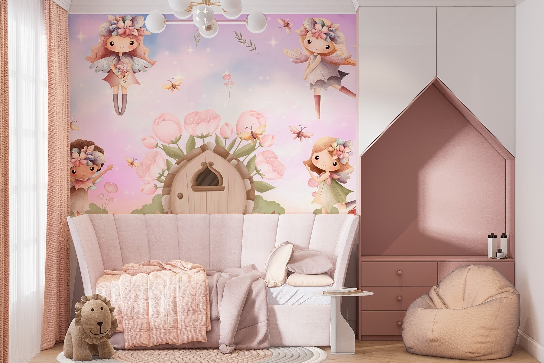 Przekształć dowolną przestrzeń w kapryśną krainę czarów dzięki tej zachwycającej fototapecie przedstawiającej uroczą grupę wróżek. Wyobraź sobie żywe odcienie pasteli delikatnie wirujące w tle, gdy te figlarne stworzenia latają, szerząc radość i magię. Razem tańczą wśród kolorowych kwiatów i trzepoczących motyli, zapraszając każdego, kto wejdzie do środka, do zatrzymania się i uśmiechu. Wyobraź sobie, jak oczy dziecka zapalają się na widok nowej zaczarowanej ściany – natychmiastowa przygoda w domu. Idealnie nadaje się do pobudzenia wyobraźni i dodania odrobiny fantazji do pokoju zabaw lub pokoju dziecięcego. Kto nie marzyłby o wróżkach latających nad głową?