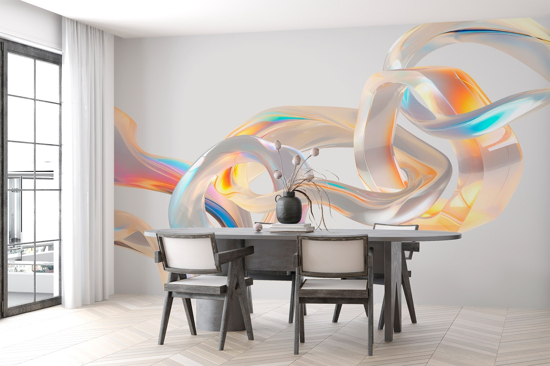 Odmień każde pomieszczenie dzięki hipnotyzującej fototapecie “Melting Curves of Vibrant Hues”! Wyobraź sobie, że wchodzisz do swojej przestrzeni i czujesz się, jakbyś wkroczył do krainy snów – kolory wirują razem w radosnym tańcu. Ta fototapeta nie tylko zdobi; przyciąga wzrok, sprawiając, że małe przestrzenie wydają się rozległe i żywe. Niezależnie od tego, czy jest to przytulna jaskinia, czy tętniąca życiem kawiarnia, jej abstrakcyjne piękno pobudza do rozmowy i wzbudza emocje. Idealny dla tych, którzy cenią sztukę, która jest nieco figlarna i pełna zabawy. Wyobraź sobie: popijasz kawę, wpatrując się w te miękkie krzywizny, a może nawet gubisz się w myślach. Co za klimat!