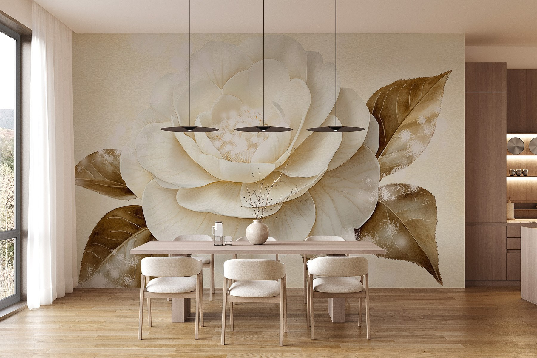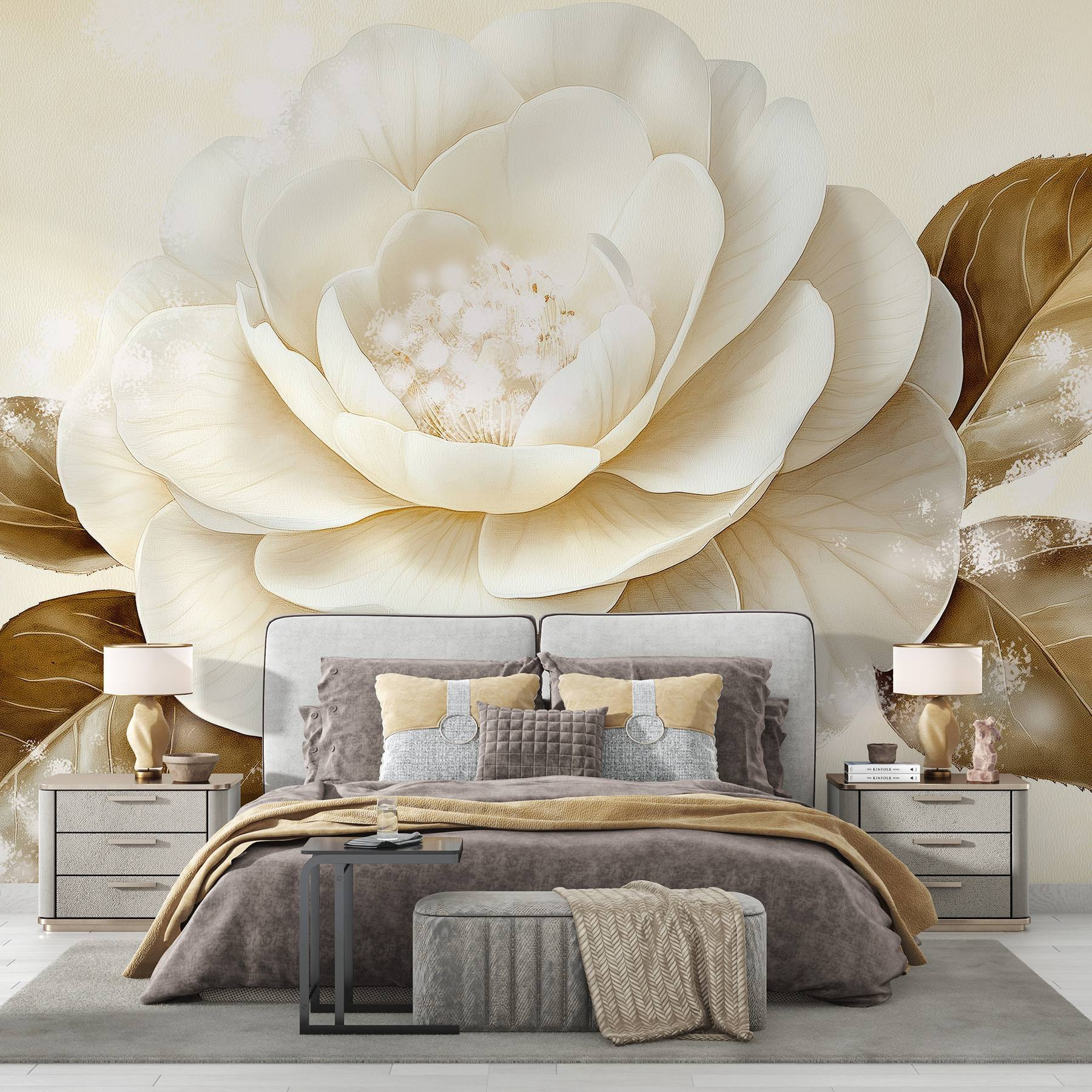 Odmień swoją przestrzeń dzięki tej oszałamiającej fototapecie ściennej przedstawiającej piękny biały kwiat w połączeniu z ciepłymi brązowymi liśćmi. Wyobraź sobie, że wchodzisz do pokoju, w którym wita cię to dzieło sztuki, wypełniając go poczuciem spokoju i urokiem natury. Miękkie odcienie i delikatne detale przyciągają wzrok, dzięki czemu idealnie nadają się do przytulnego salonu lub spokojnej sypialni. Odwiedzający mogą zatrzymać się, aby podziwiać jego piękno, a może nawet zainspirować się do relaksu z dobrą książką w pobliżu. To tak, jakby przenieść odrobinę świeżego powietrza do wnętrza – pomijając pyłki. Prosta zmiana, która wywołuje radość, nie sądzisz?
