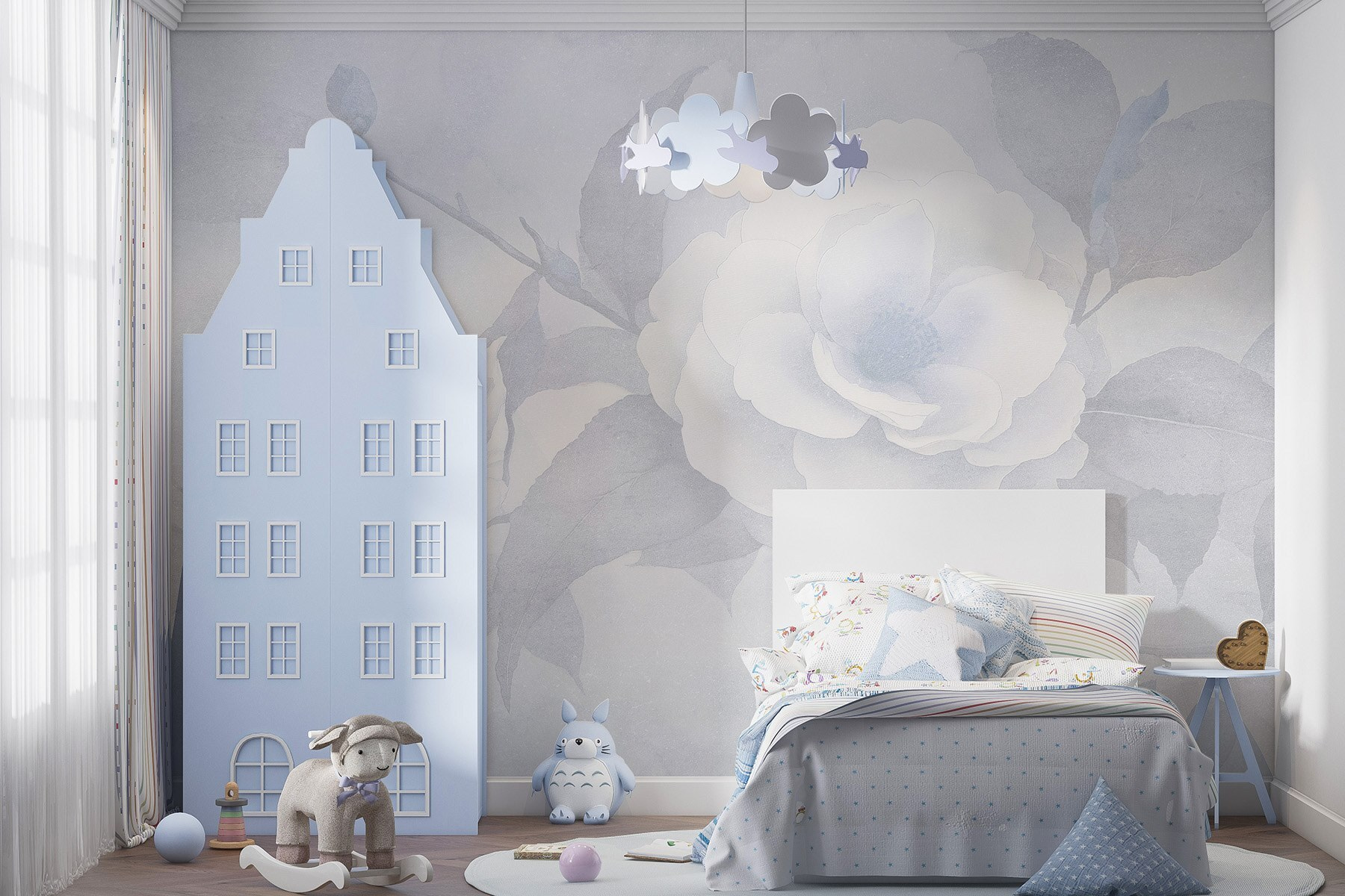 Przekształcenie przestrzeni może być tak proste, jak dodanie tej fototapety ściennej z delikatnymi białymi kwiatami i liśćmi. Wyobraź sobie, że każdego dnia budzisz się z tym spokojnym pięknem. To jak zaproszenie natury do domu bez martwienia się o podlewanie roślin lub uciążliwe owady. Delikatna paleta tworzy uspokajającą atmosferę – idealną do przytulnego kącika do czytania lub spokojnej sypialni. Znajomi będą wpadać tylko po to, by go podziwiać. Dodatkowo, pobudza do rozmów, takich jak: “Czy to sztuka czy natura?” – a kto nie lubi odrobiny tajemniczości w swoim wystroju?