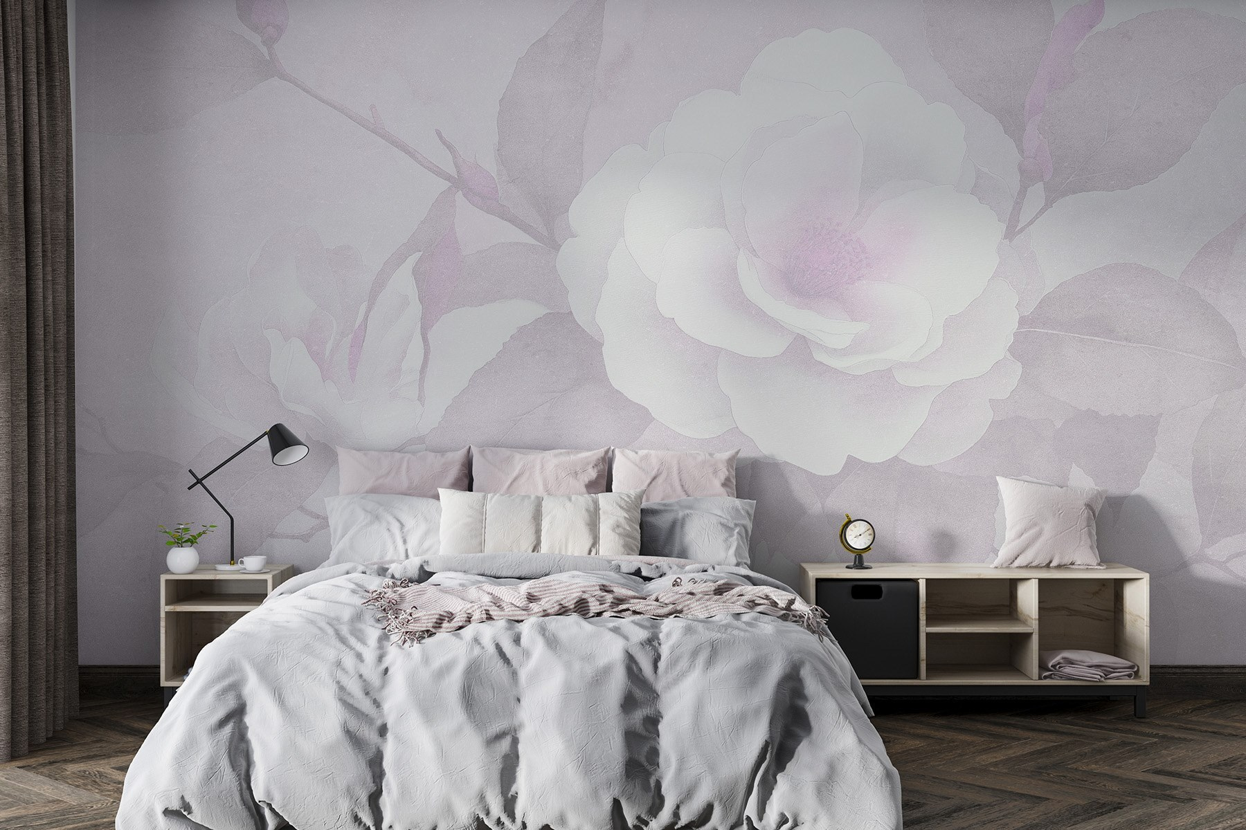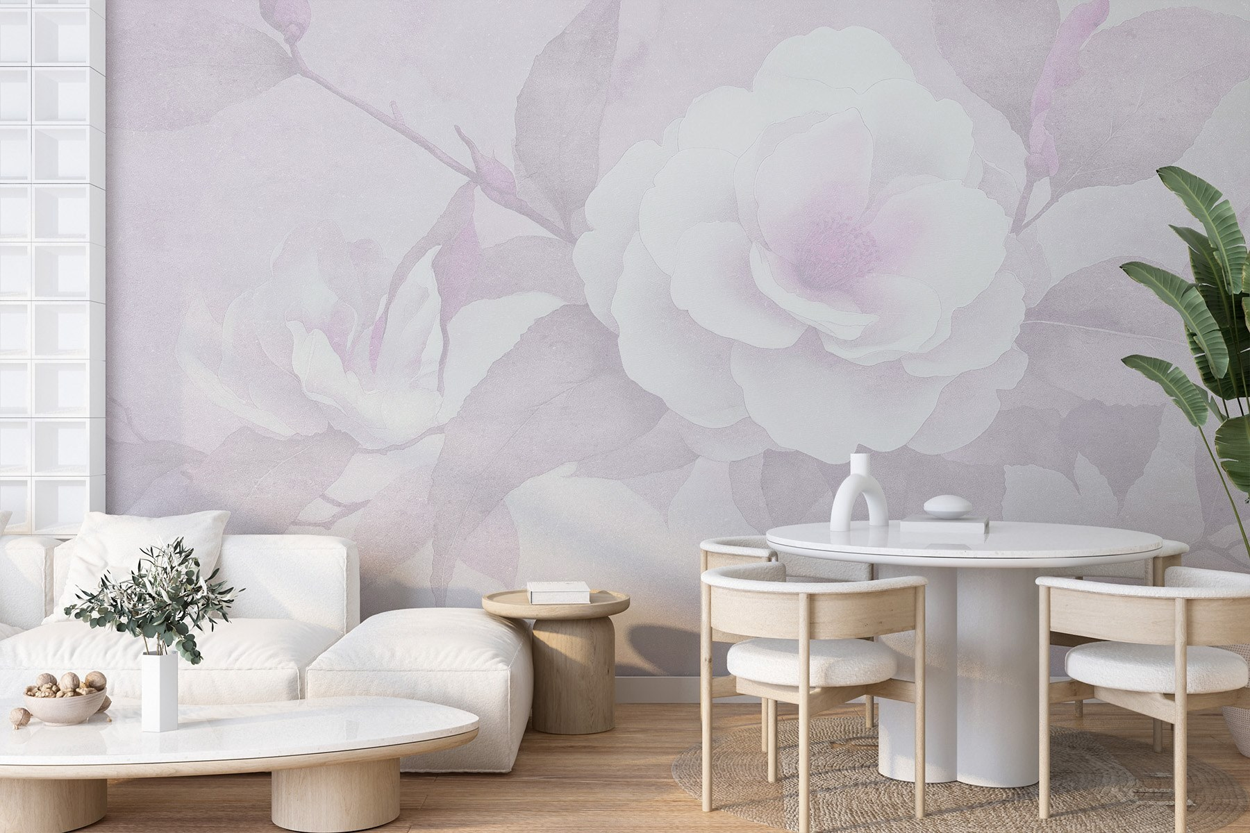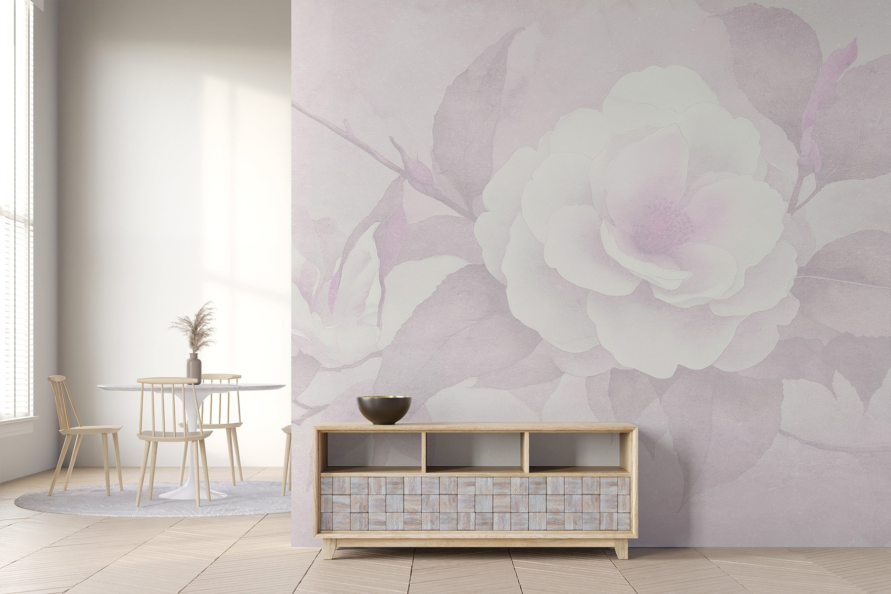 Przekształć swoją przestrzeń w spokojne miejsce z fototapetą ścienną Biały kwiat z liśćmi. Wyobraź sobie, że wchodzisz do pokoju, który szepcze spokój, z delikatnymi kwiatami wdzięcznie rozciągającymi się po ścianach. To jak własny ogród, bez pielenia! Delikatne odcienie wprowadzają świeży nastrój, dzięki czemu idealnie nadają się na relaksujące wieczory lub energiczne brunche z przyjaciółmi. Możesz nawet przyłapać się na marzeniach – może o tej przytulnej kawiarni z idealną filiżanką kawy. Ta fototapeta ma sposób na wywołanie tych małych chwil radości i inspiracji. Wprowadź lekkość natury do wnętrza i obserwuj, jak twoja przestrzeń rozkwita!