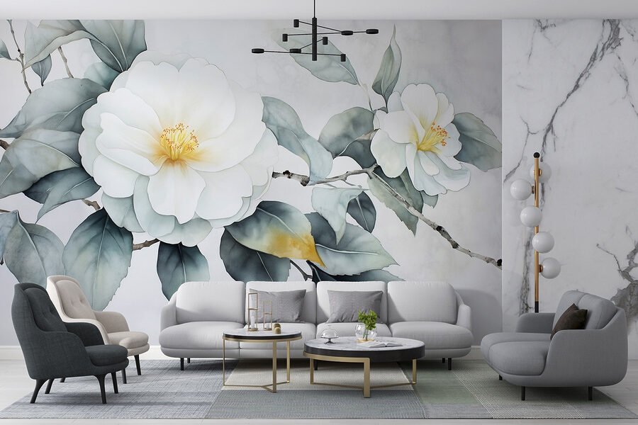 Przekształć nudną ścianę w spokojny zakątek dzięki tej pięknej fototapecie z białymi kwiatami i delikatnymi zielonymi liśćmi. To jak powiew świeżego powietrza we wnętrzu bez konieczności podlewania czegokolwiek. Idealna na te dni, kiedy odrobina zieleni może poprawić nastrój, ta fototapeta tworzy uspokajające tło dla każdego pomieszczenia. Wyobraź sobie, że popijasz poranną kawę, wpatrując się w to piękno – to praktycznie mini-wakacje. Dodatkowo, jest to świetny początek rozmowy, zwłaszcza gdy goście pytają o twój “sekretny ogród”. Kto potrzebuje pełnej kwiatowej metamorfozy, gdy ta fototapeta załatwia sprawę?