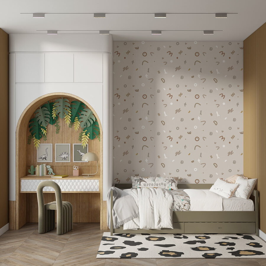 Rozjaśnij każdą przestrzeń dzięki tej zachwycającej fototapecie ściennej z zabawnymi wzorami małych przedmiotów, które wprowadzą odrobinę kaprysu do pomieszczenia. Wyobraź sobie, że wchodzisz do pokoju, w którym te urocze kształty tańczą po ścianie, pobudzając radość i kreatywność. Idealny do pokoju dziecięcego lub przytulnego kącika do czytania, ten wzór dodaje odrobinę zabawy bez krzyku o uwagę. Delikatna paleta kolorów tworzy ciepłą atmosferę, sprawiając, że poczujesz się jak w domu. To jak przytulanie się do ścian! Niech ta fototapeta będzie płótnem dla codziennej inspiracji i niekończących się marzeń.