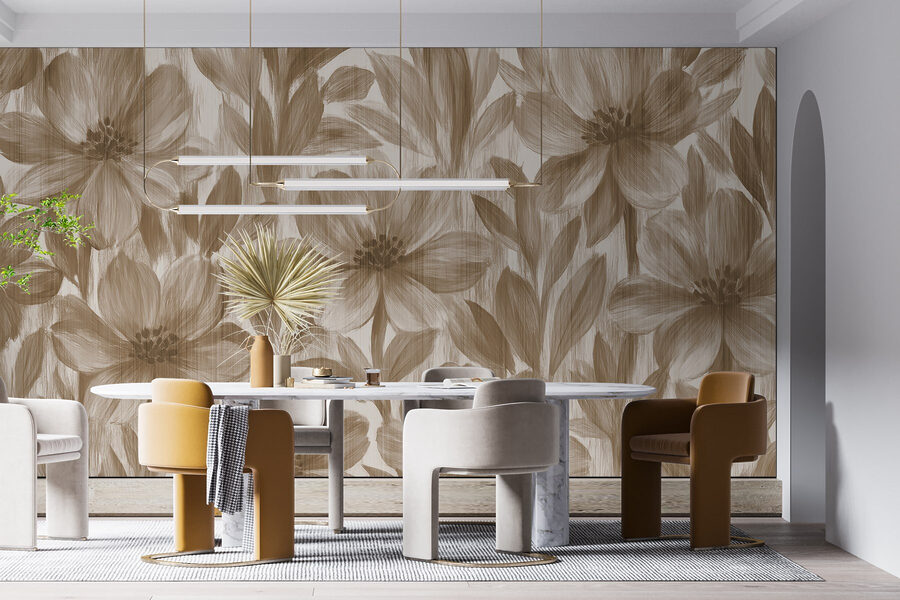 Przekształć każde pomieszczenie w przytulny azyl dzięki tym oszałamiającym fototapetom ściennym z delikatnymi kwiatowymi wzorami w ziemistych odcieniach. Wyobraź sobie, że wchodzisz do przestrzeni, w której delikatne kwiaty tańczą po ścianach, zapraszając do poczucia spokoju i ciepła. Idealne do salonu, sypialni, a nawet małego kącika do czytania, w którym panuje spokój. To jak powiew świeżego powietrza lub ciepły uścisk w chłodny dzień. Przyjaciele mogą się zatrzymać, rozmawiając o sztuce i wystroju wnętrz, podczas gdy ty będziesz rozkoszować się spokojną atmosferą. Miłośnicy natury pokochają sposób, w jaki te kwiatowe wzory wprowadzają do wnętrza atmosferę, która jest zarówno żywa, jak i kojąca. Śmiało, pozwól tym pięknym kwiatom rozkwitnąć w Twoim domu.