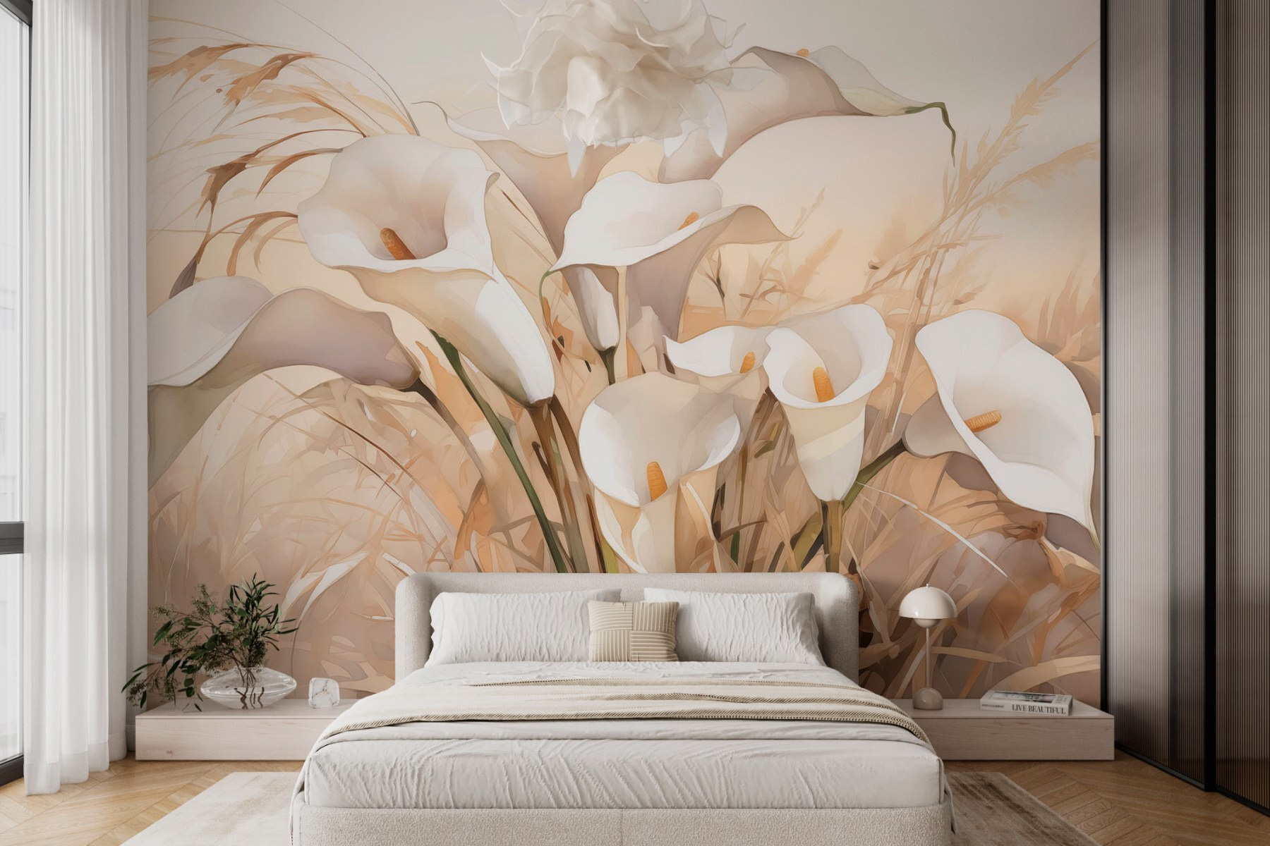 Odmień swoją przestrzeń dzięki tej zachwycającej fototapecie przedstawiającej grupę eleganckich białych kwiatów. Wyobraź sobie, że wchodzisz do spokojnego ogrodu, gdzie te kwiaty wnoszą odrobinę natury do twojego domu. Delikatne kolory i łagodne krzywizny każdego płatka tworzą atmosferę spokoju i relaksu. To jak posiadanie mini sanktuarium na ścianie! Przyjaciele będą wpadać, a ty będziesz rozmawiać o tym, jak kwiaty wydają się wprowadzać do wnętrza naturę. Idealna do przytulnego salonu lub spokojnej sypialni, ta fototapeta szepcze piękno i spokój.