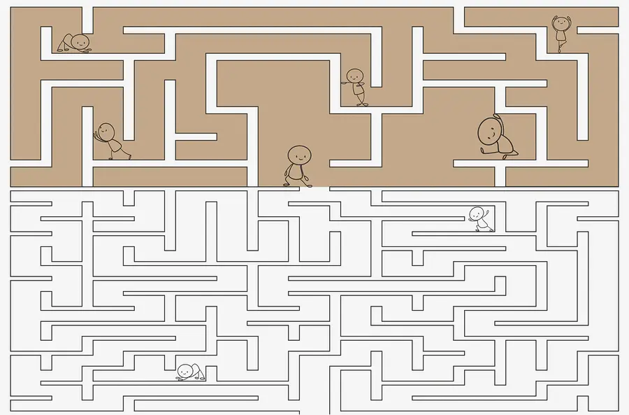 Wprowadź zabawną atmosferę do każdej przestrzeni dzięki tej uroczej fototapecie ściennej przedstawiającej labirynt. Wyobraź sobie małe postacie wędrujące przez zakręty i zakręty, z których każda przeżywa własną mini przygodę. Idealna dla dzieci (i młodych duchem), pobudza kreatywność i wyobraźnię. Wyobraź sobie: dziecko wskazujące podekscytowane na mural, zagubione w poszukiwaniu wyjścia. Kolory są ciepłe i zachęcające, dodając przytulności pomieszczeniu. To nie tylko dekoracja; to plac zabaw dla umysłu! Idealny do pokoju dziecięcego lub pokoju zabaw, zapewni małym odkrywcom rozrywkę na wiele godzin. Niech zabawa się zacznie!