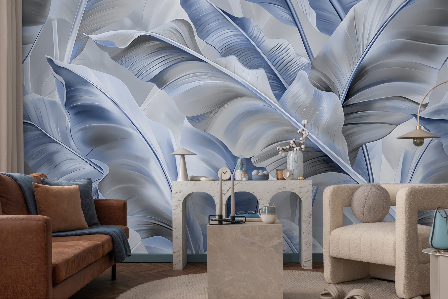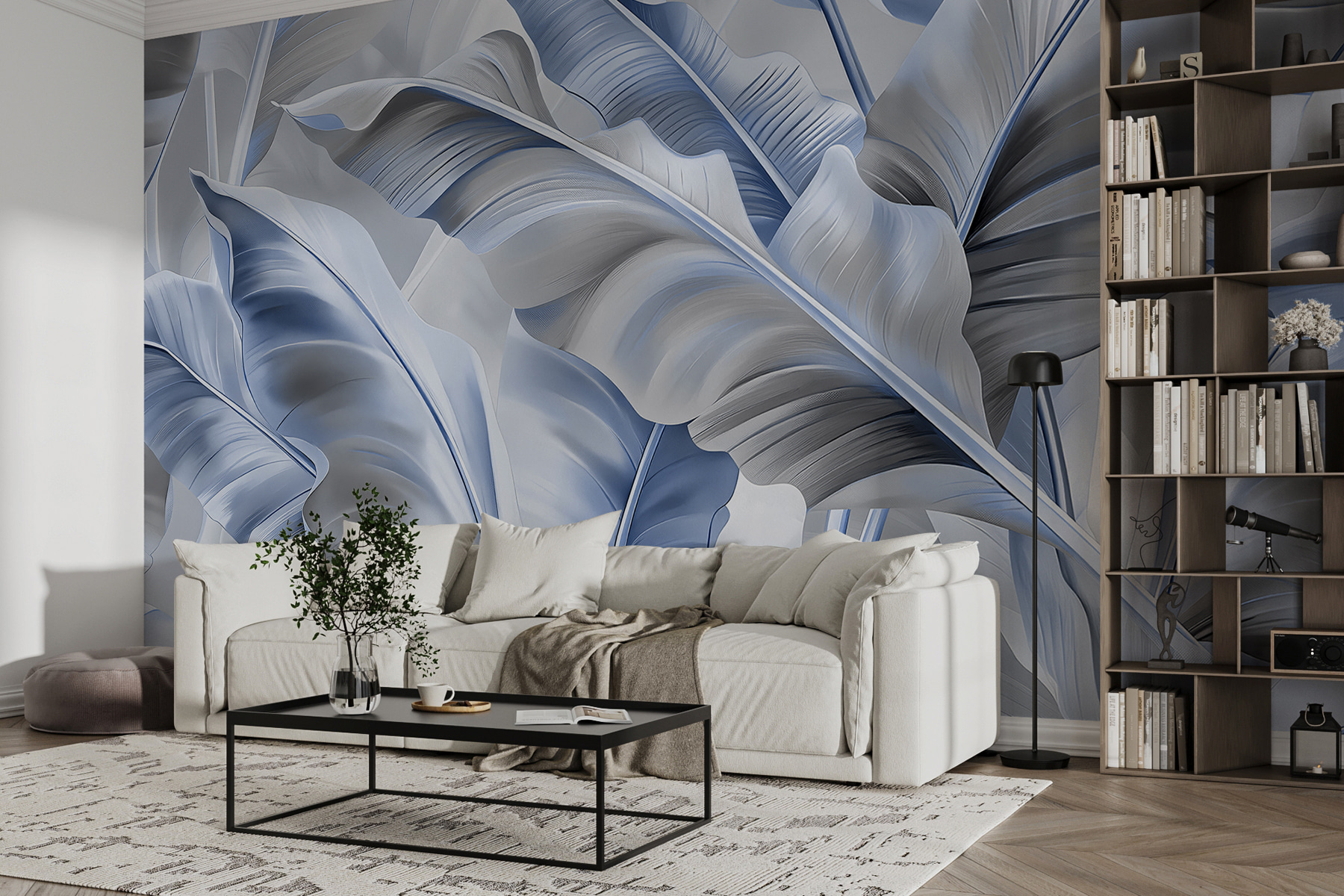 Przekształcanie przestrzeni może wydawać się mini-przygodą, a ta fototapeta ścienna z eleganckimi niebieskimi liśćmi to strzał w dziesiątkę. Wyobraź sobie, że wchodzisz do pokoju, w którym natura spotyka się z artyzmem, a miękkie, abstrakcyjne liście otulają cię kojącym uściskiem. Chłodne odcienie niebieskiego tworzą uspokajającą atmosferę, idealną do relaksu po długim dniu lub nadania klimatu przytulnemu spotkaniu. To jak posiadanie ogrodu w domu – bez konewki. Dodatkowo, te łagodne krzywizny i płynne kształty? Praktycznie szepczą relaks. Goście mogą nawet pomyśleć, że jesteś jakimś czarodziejem designu. Ta fototapeta nie tylko ozdabia; podnosi ona przestrzeń w coś, co wydaje się świeże i zachęcające. To zdecydowanie początek rozmowy. Kto nie chciałby porozmawiać o tych oszałamiających liściach?