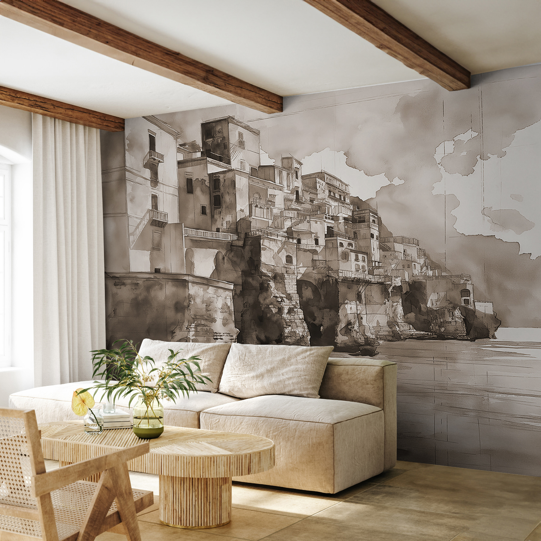 Wyobraź sobie, że budzisz się i widzisz krajobraz miasta, który wydaje się szeptać historie o ukrytych alejkach i tętniących życiem rynkach. Ta akwarelowa fototapeta ścienna otuli cię urokiem starego miasta w twoim salonie. To jak mini wakacje za każdym razem, gdy na nią spojrzysz. Stonowane odcienie i kolory tworzą uspokajającą atmosferę, idealną do wywołania marzeń na jawie. Niezależnie od tego, czy spędzasz czas z filiżanką kawy, czy gościsz przyjaciół, ta fototapeta z pewnością rozpocznie kilka rozmów – może nawet doprowadzi do spontanicznego planu podróży!