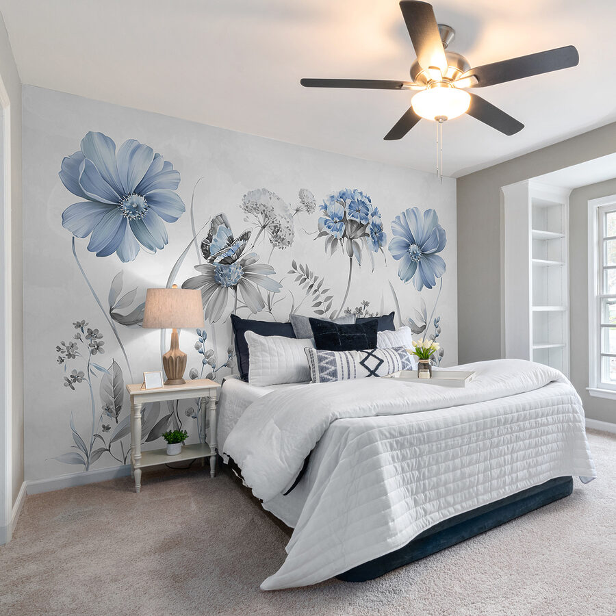 W porządku, porozmawiajmy o tej fototapecie – “Fototapeta w07905v2”, jak się oficjalnie nazywa. To gratka dla miłośników motyli i każdego, kto lubi wystrój o tematyce przyrodniczej. Wyobraź sobie następującą sytuację: pijesz poranną kawę, a tłem są te delikatne niebieskie kwiaty i motyle. Ich delikatne odcienie i misterne detale mają niemal magiczny klimat… jakbyś wszedł do spokojnego ogrodu.