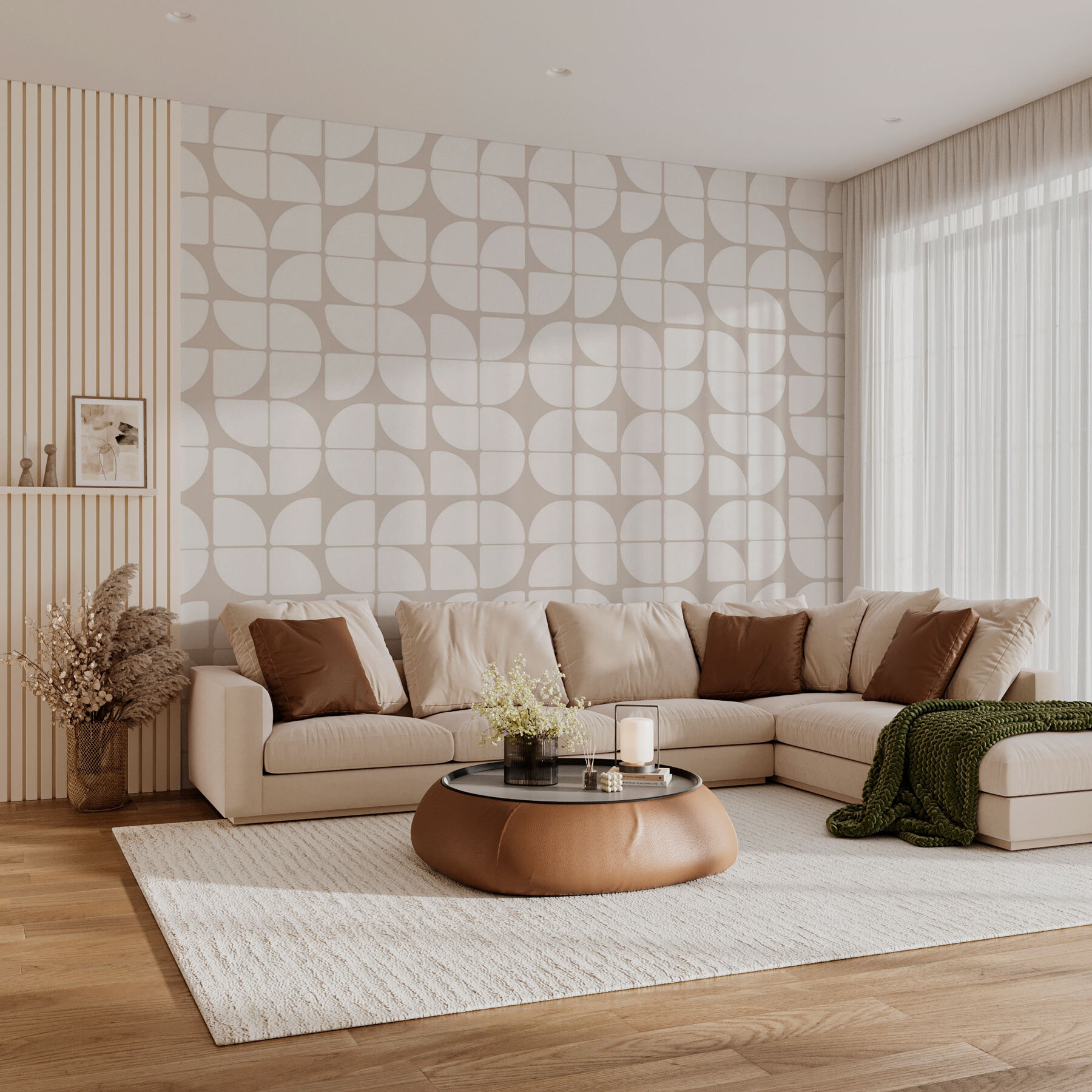 Odmień każdą przestrzeń dzięki tej uroczej fototapecie ściennej z zabawnym wzorem kół i linii. To jak zabawna rozmowa na ścianie – odważna, ale kojąca, zachęcająca, ale wyrafinowana. Wyobraź sobie, że wchodzisz do pokoju i od razu czujesz atmosferę, która mówi: “Witaj, kreatywności!”.