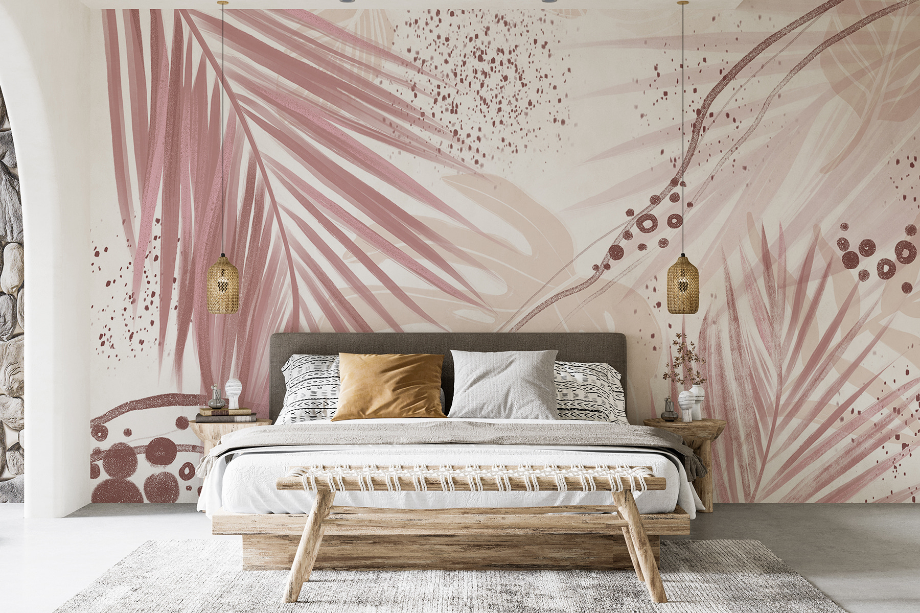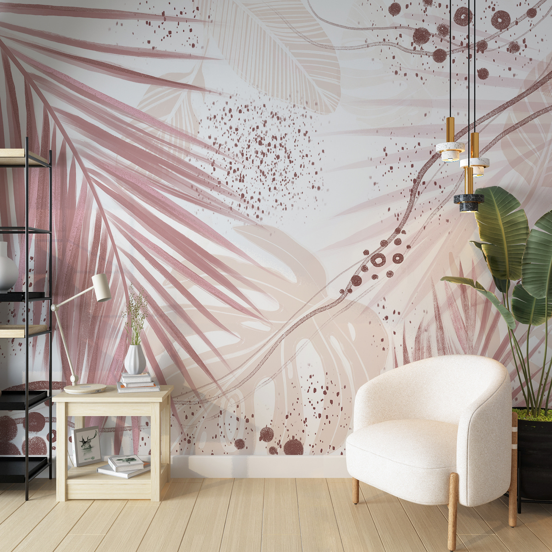 Skomplikowane liście palmowe i abstrakcyjne wzory zmieszane z delikatnymi różami i odcieniami ziemi… to jak marzenie miłośnika przyrody! Idealnie nadaje się do dodania odrobiny stylu do salonu, sypialni, a nawet domowego biura. Czym jest życie bez odrobiny kreatywności? Za każdym razem, gdy wchodzisz do pokoju, jest to jak delikatny uścisk Matki Natury – mała ucieczka od codziennego zgiełku.