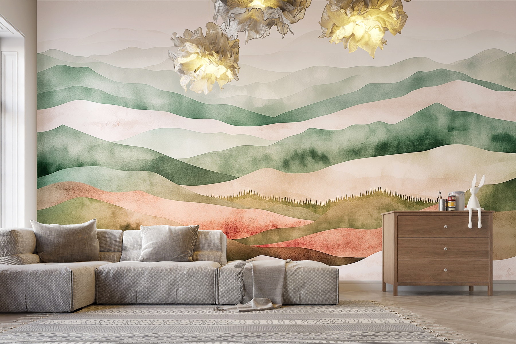 Wyobraź sobie, że wkraczasz do spokojnego świata za każdym razem, gdy spojrzysz na tę fototapetę. Miękkie krzywizny wzgórz i delikatne drzewa zapraszają do poczucia spokoju, zamieniając każdą przestrzeń w przytulny azyl. To jak przeniesienie odrobiny natury do wnętrza bez konieczności posiadania zielonego kciuka. Idealny do cichego kącika do czytania lub ściany, której przydałoby się trochę miłości, szepcze spokojne wibracje. Znajomi mogą zapytać, czy jest to obraz lokalnego artysty, czy po prostu wspaniałe zdjęcie – tak czy inaczej, wywołuje rozmowy. Kto nie chciałby odrobiny magii inspirowanej naturą w swoim domu? Idealnie wszechstronny, pasuje do każdego stylu i błyskawicznie poprawia nastrój.