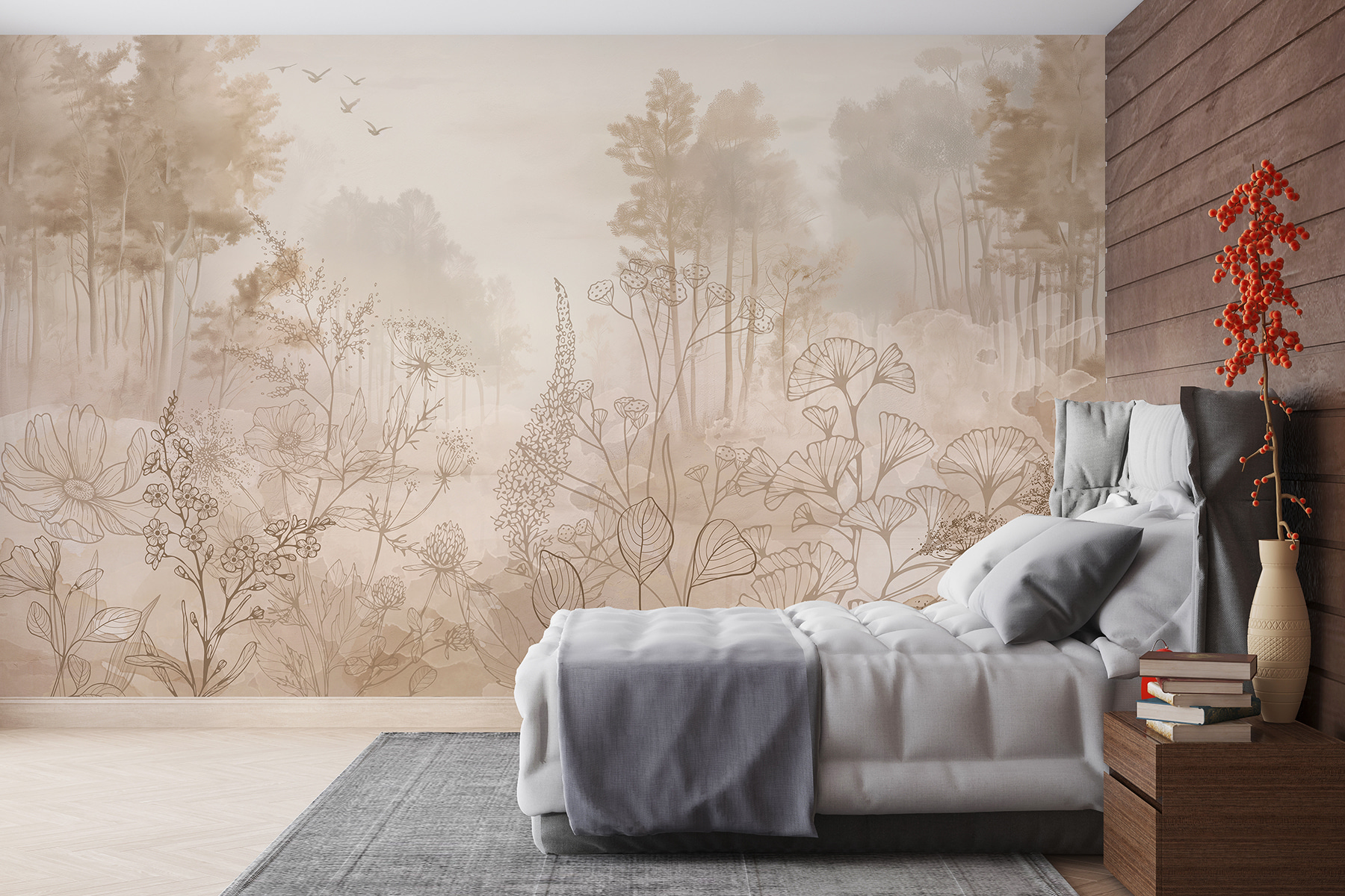 Fototapeta należy do kategorii Popularne fototapety ścienne, Natura, Wygląd drewna i Fototapety ścienne z drewna – w zasadzie jest to supergwiazda. Delikatne drzewa i delikatne kwiaty mogą sprawić, że zapomnisz o zgiełku na zewnątrz. Idealne do sypialni lub salonu, gdy chcesz się zrelaksować. Ponadto te subtelne kolory pasują do wszystkiego, więc nie musisz się martwić, że będą kolidować z wystrojem. Pomyśl tylko – filiżanka herbaty, wygodny fotel i ta piękna fototapeta nadająca nastrój. Błogość!