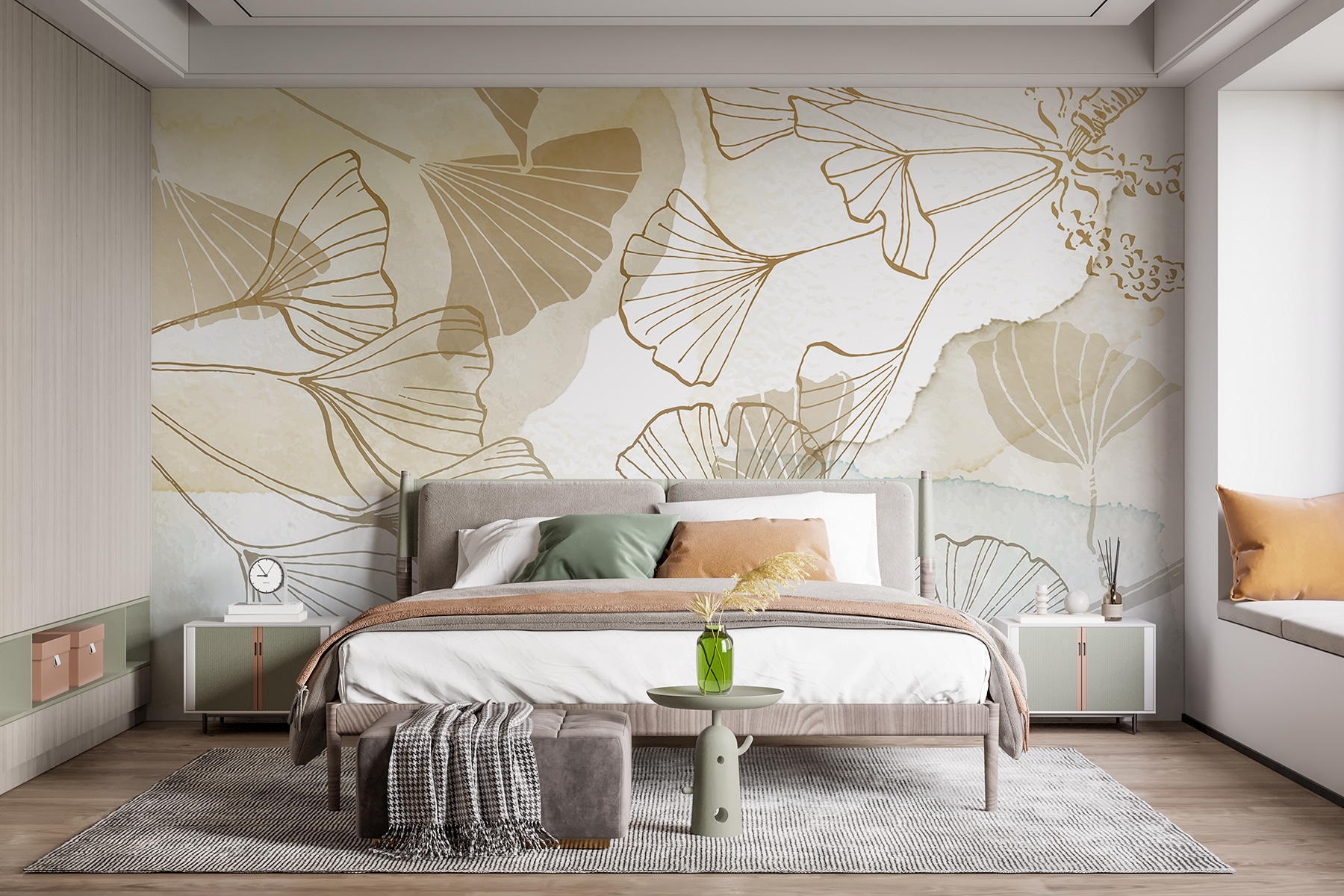 Przekształć swoją przestrzeń w kojącą oazę dzięki czarującej fototapecie “Graceful Ginkgo Leaves”. To jak przeniesienie kawałka natury do wnętrza, bez alergii. Te akwarelowe liście są delikatnie ułożone warstwami, tworząc uspokajającą atmosferę, która szepcze spokój. Wyobraź sobie, że popijasz poranną kawę przed tym spokojnym tłem, czując się, jakbyś spacerował po spokojnym ogrodzie. Idealny do salonu lub gabinetu, jest to łatwy sposób na podniesienie ściany bez rozbijania potu… lub banku. Po prostu powieś go i pozwól, aby atmosfera przejęła kontrolę; kto by pomyślał, że dekorowanie może być tak łatwe?