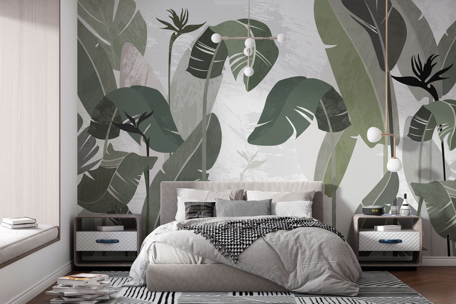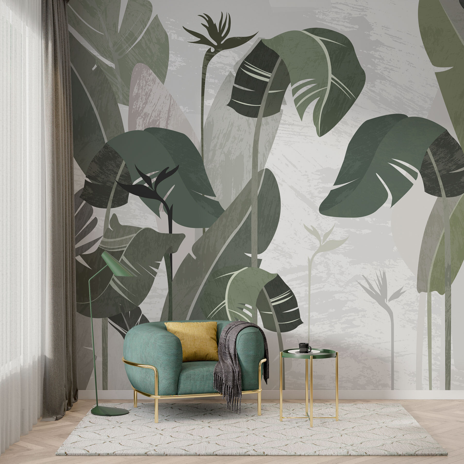 Przekształć każde pomieszczenie w spokojną oazę dzięki fototapecie “Tropical Leaves in Stylish Hues”. Wyobraź sobie: wchodzisz do swojego pokoju i bum! Te duże liście otulają cię przytulną, ale orzeźwiającą atmosferą. Stonowane zielenie i delikatne odcienie niemal szepczą spokój natury, sprawiając, że twój salon czuje się jak skąpane w słońcu miejsce odosobnienia. Wyobraź sobie, że popijasz poranną kawę, otoczony tym bujnym tłem. To nie tylko wystrój; to ucieczka. Idealna na przytulne wieczory lub ożywione spotkania. Dzięki tej fototapecie ściana nie będzie tylko ścianą – będzie opowiadać historię.