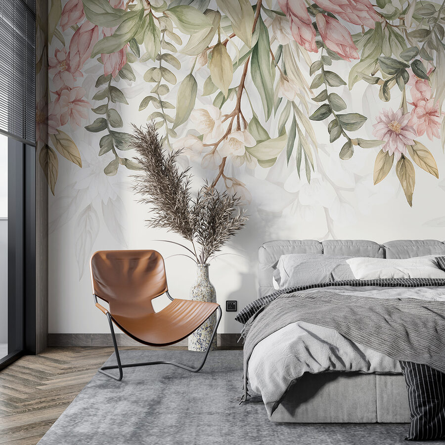 Mieszanka delikatnych różów i subtelnych zieleni tworzy uspokajającą i zachęcającą atmosferę – idealną na leniwą niedzielną poranną kawę lub wieczorny relaks z dobrą książką. Sprawia, że czujesz się, jakbyś wkroczył do szkicu botanicznego, wnosząc odpowiednią nutę świeżości i spokoju. Pomyśl o tych dniach, kiedy po prostu chcesz być otoczony pięknem i prostotą – ta fototapeta jest właśnie dla Ciebie.