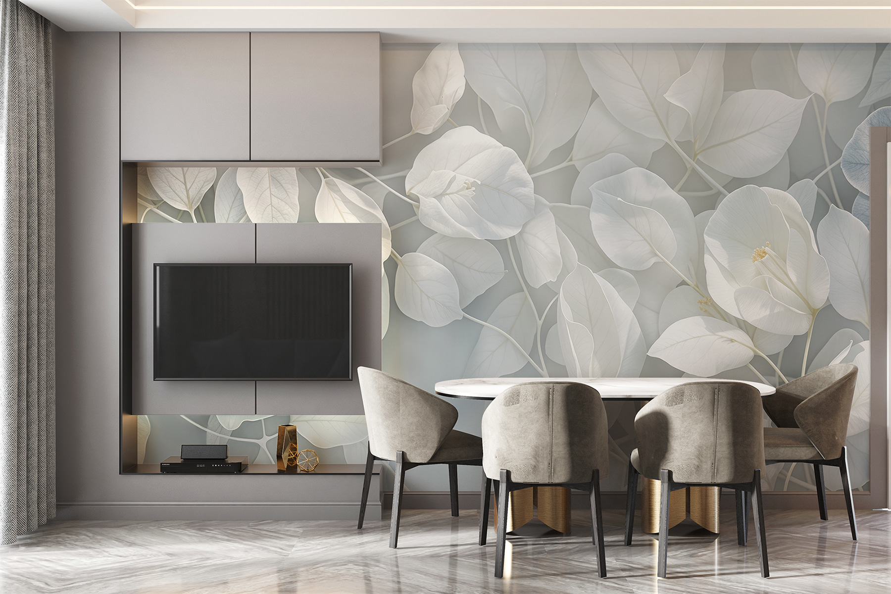 Cześć! Chcesz dodać odrobinę elegancji do swojej przestrzeni? Sprawdź “Fototapety ścienne w08232” – to jak wejście do sennego ogrodu za każdym razem, gdy wchodzisz do pokoju. Fototapeta ta znajduje się w kategoriach “Fototapety kwiaty”, “Popularne fototapety” i “Fototapety natura”, co czyni ją wszechstronnym wyborem dla każdego miłośnika natury. Miękkie, delikatne biele i uspokajające szarości tworzą niemal magiczną atmosferę, idealną do wyciszenia się po długim dniu. Wyobraź to sobie na ścianie w salonie, wprowadzając spokojną atmosferę, która jest zarówno orzeźwiająca, jak i spokojna – mała ucieczka w domu. To prawie tak, jakby liście szeptały delikatną kołysankę, zapraszając do relaksu i spokoju. A czy te białe kwiaty nie są po prostu pop? Dodają subtelnego efektu wow, ale nie są zbyt krzykliwe. Krótko mówiąc, ta fototapeta jest jak delikatny uścisk dla twoich ścian – bez wysiłku szykowna i bardzo zachęcająca! 🌿✨