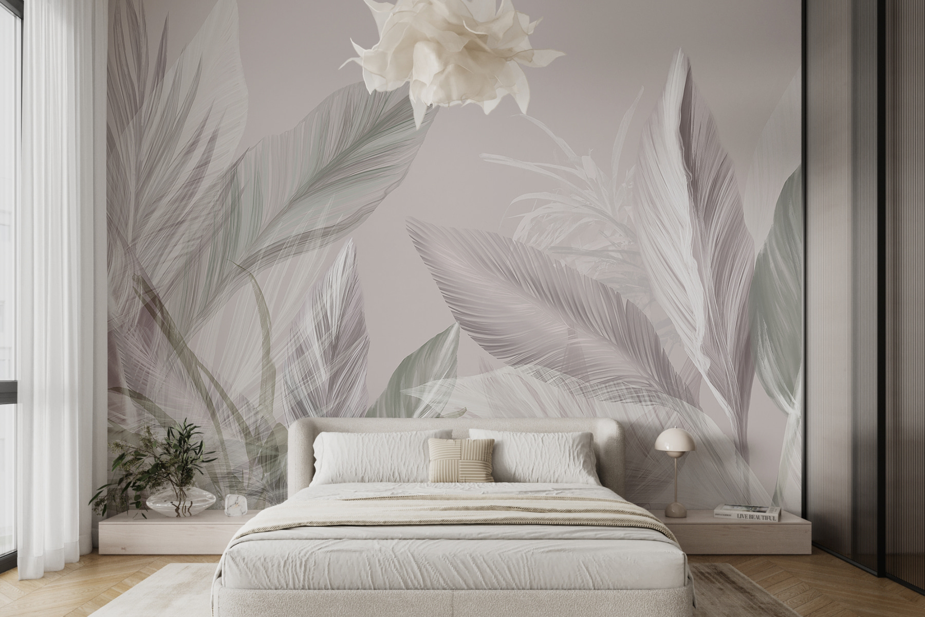 Przekształć każdą przestrzeń w spokojną przystań dzięki “Ethereal Whispers in Soft Hues”. Ta fototapeta bez wysiłku łączy stonowane kolory i delikatne liście, tworząc pogodną atmosferę, która szepcze relaks. Wyobraź sobie zwinięcie się z książką w pokoju ozdobionym tymi delikatnymi liśćmi – to tak, jakbyś był objęty przez samą naturę. Idealny na przytulne wieczory lub spontaniczne imprezy taneczne w salonie. To nie tylko dekoracja; to doświadczenie, które sprawi, że goście pomyślą, że Twój dom jest prosto z magazynu o projektowaniu. Więc śmiało, niech te kojące odcienie tchną życie w twoje ściany!