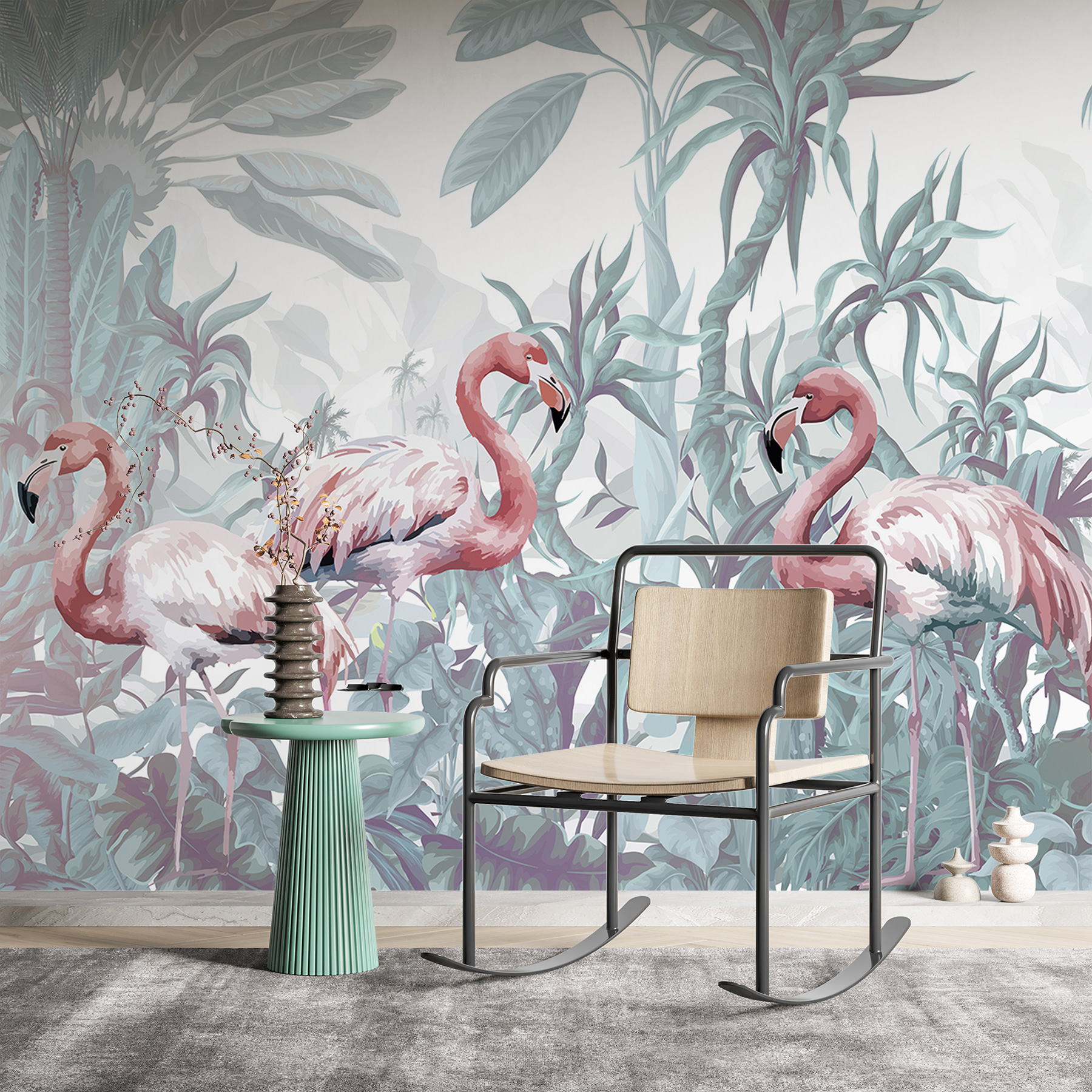 Wkrocz do tętniącego życiem świata dzięki tej oszałamiającej fototapecie przedstawiającej żywą grupę flamingów położonych w bujnej dżungli. Wyobraź to sobie: różowe odcienie flamingów kontrastują z morzem tropikalnej zieleni, tworząc przestrzeń, która jest zarówno spokojna, jak i ożywcza. To tak, jakby mieć kawałek raju na ścianie, zapraszający do relaksu po długim dniu. Wyobraź sobie popijanie porannej kawy w otoczeniu piękna natury lub goszczenie przyjaciół, którzy nie mogą powstrzymać się od uśmiechu na widok tego zabawnego wystroju. Idealna do każdego pokoju pragnącego wietrznej, tropikalnej atmosfery – ta fototapeta przekształca zwykłe ściany w zachwycającą ucieczkę. Niech flamingi rozjaśnią twoją przestrzeń i ducha!