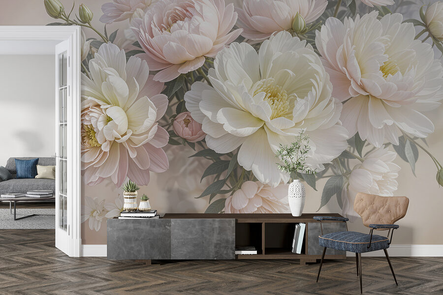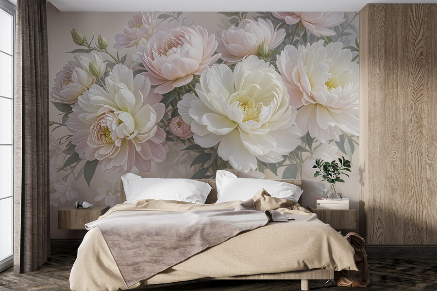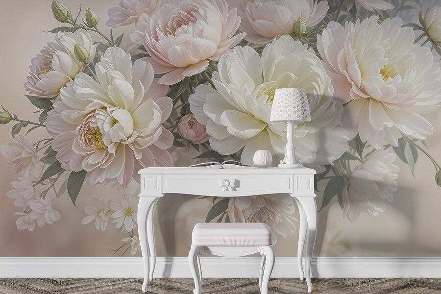 Wyobraź sobie, że wchodzisz do pokoju i jesteś witany przez to senne morze białych i różowych kwiatów – jak wejście do bajkowego ogrodu! Ta fototapeta emanuje elegancją i radością, prawda? Idealna do przekształcenia każdej nudnej przestrzeni w spokojną przystań. Wyobraź sobie, że budzisz się z tymi gigantycznymi piwoniami, które otulają cię miękkim kwiatowym uściskiem. To trochę tak, jakby natura postanowiła rozbić obóz na twojej ścianie. Idealny dla marzycieli i miłośników kwiatów, to przytulny artystyczny uścisk czekający, aby rozjaśnić Twój dzień. Wystarczy dodać wygodny fotel, dobrą książkę i pozwolić kwiatom działać magicznie!