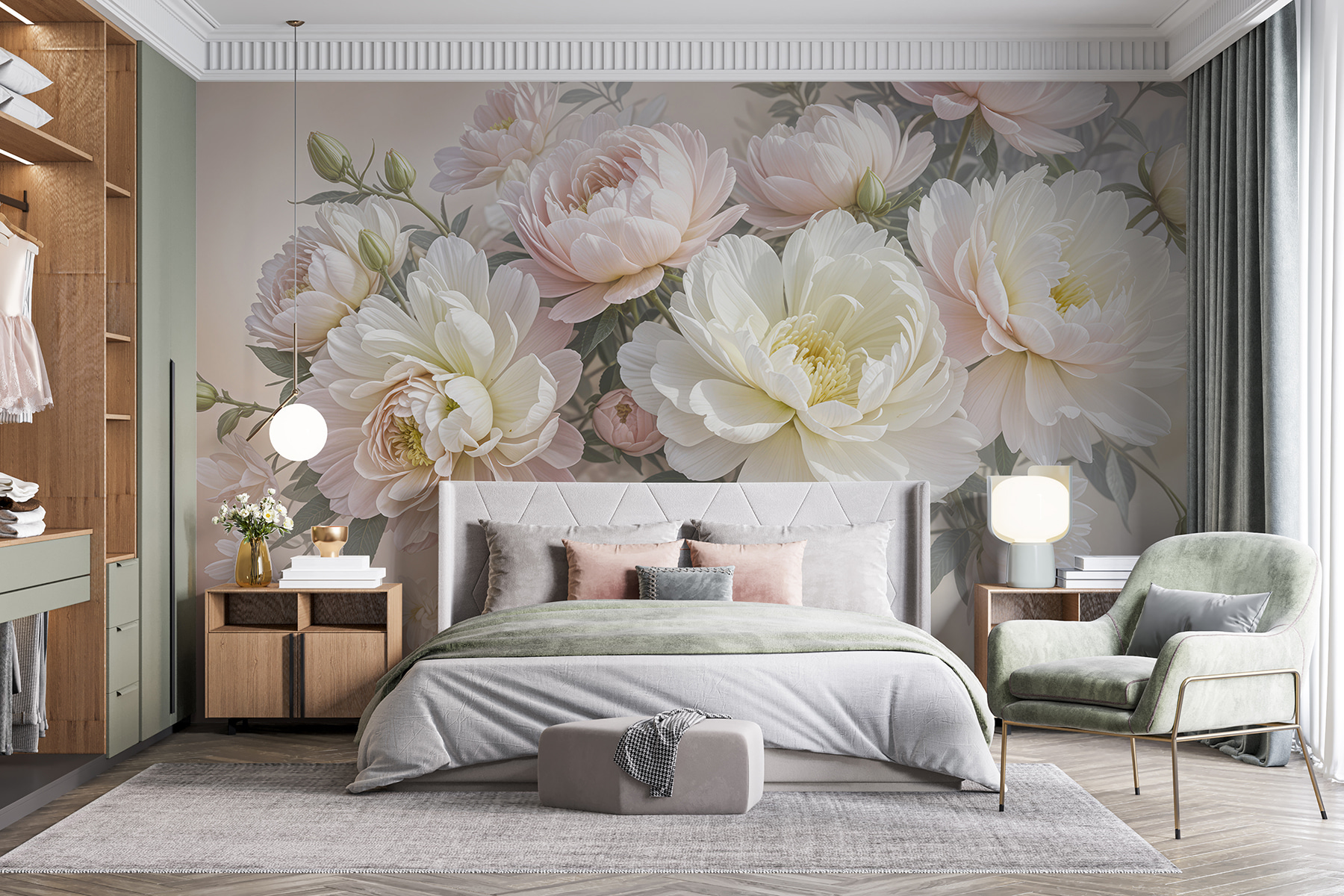 Wyobraź sobie, że wchodzisz do pokoju i jesteś witany przez to senne morze białych i różowych kwiatów – jak wejście do bajkowego ogrodu! Ta fototapeta emanuje elegancją i radością, prawda? Idealna do przekształcenia każdej nudnej przestrzeni w spokojną przystań. Wyobraź sobie, że budzisz się z tymi gigantycznymi piwoniami, które otulają cię miękkim kwiatowym uściskiem. To trochę tak, jakby natura postanowiła rozbić obóz na twojej ścianie. Idealny dla marzycieli i miłośników kwiatów, to przytulny artystyczny uścisk czekający, aby rozjaśnić Twój dzień. Wystarczy dodać wygodny fotel, dobrą książkę i pozwolić kwiatom działać magicznie!