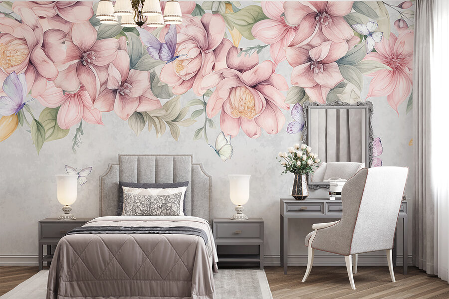 Wyobraź sobie, że każdego ranka budzisz się z tym muralem. Motyle swobodnie chłodzące się wśród bujnych kwiatów – to tak, jakby natura wcisnęła pauzę tylko na chwilę. Delikatne pastele i akwarelowe wibracje zamieniają każde pomieszczenie w spokojny zakątek. Idealny do dodania odrobiny kaprysu na ścianę bez brudzenia rąk. To jak posiadanie własnego magicznego ogrodu, który nie wymaga podlewania. Niezależnie od tego, czy jesteś entuzjastą kwiatów, czy po prostu kochasz ładne rzeczy, jest to początek rozmowy i poprawiacz nastroju w jednym.