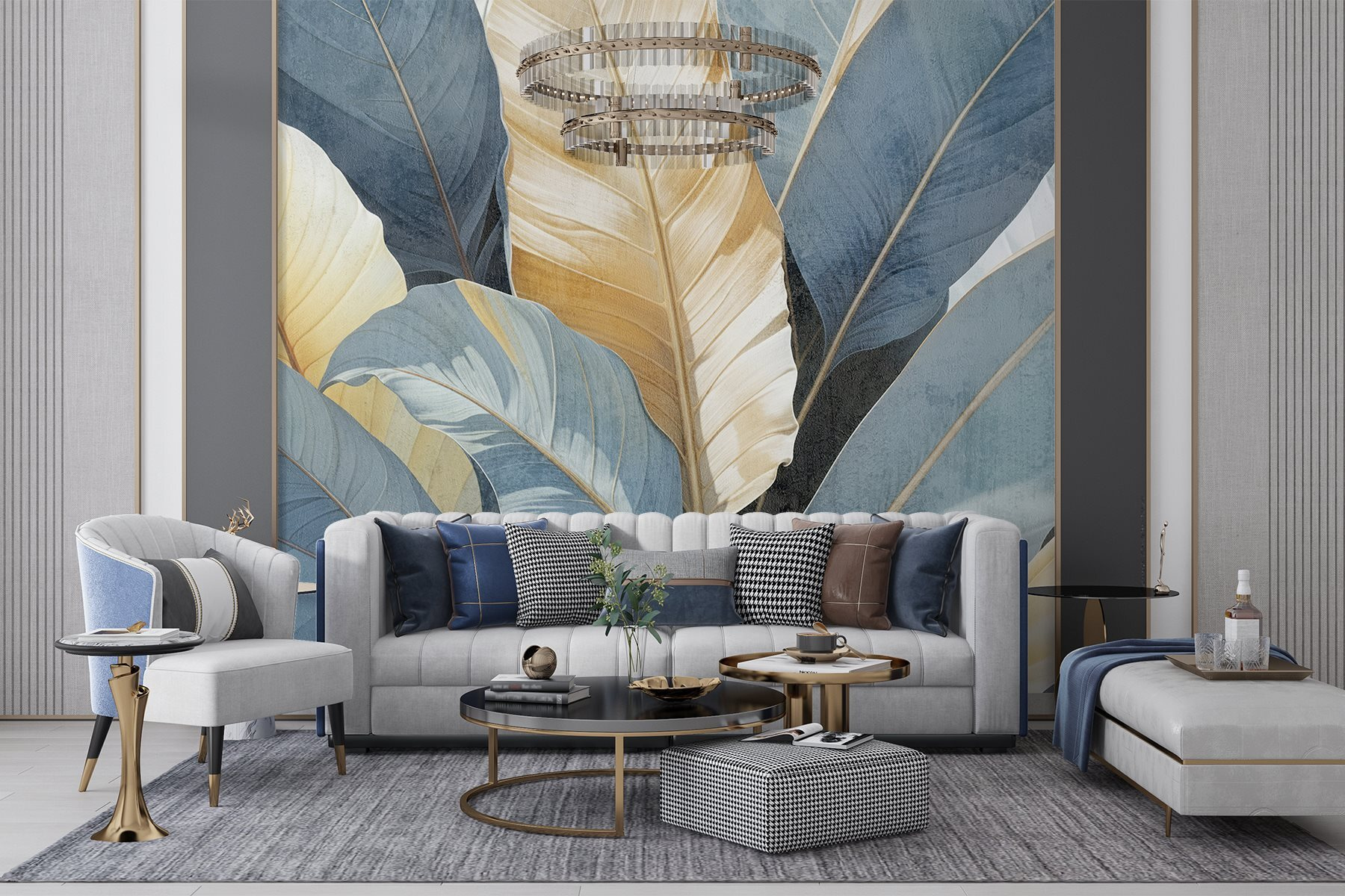 Przekształć swoją przestrzeń w spokojną oazę dzięki tej oszałamiającej fototapecie z miękkimi, liściastymi wzorami, które szepczą spokój. Każdy liść, w delikatnych odcieniach niebieskiego i kremowego, jest jak chłodna bryza w ciepły dzień. Wyobraź sobie, że wchodzisz do pokoju, który bardziej przypomina bujną ucieczkę niż tylko cztery ściany – to jak przeniesienie natury do domu bez robaków! Idealna do stworzenia przytulnego kącika do czytania lub dodania odrobiny spokoju do ruchliwego salonu, ta fototapeta tryska ciepłem i inspiracją. Jest to rodzaj dekoracji, który wywołuje uśmiech za każdym razem, gdy przechodzisz obok, zapraszając powiew świeżego powietrza do swojego domu.
