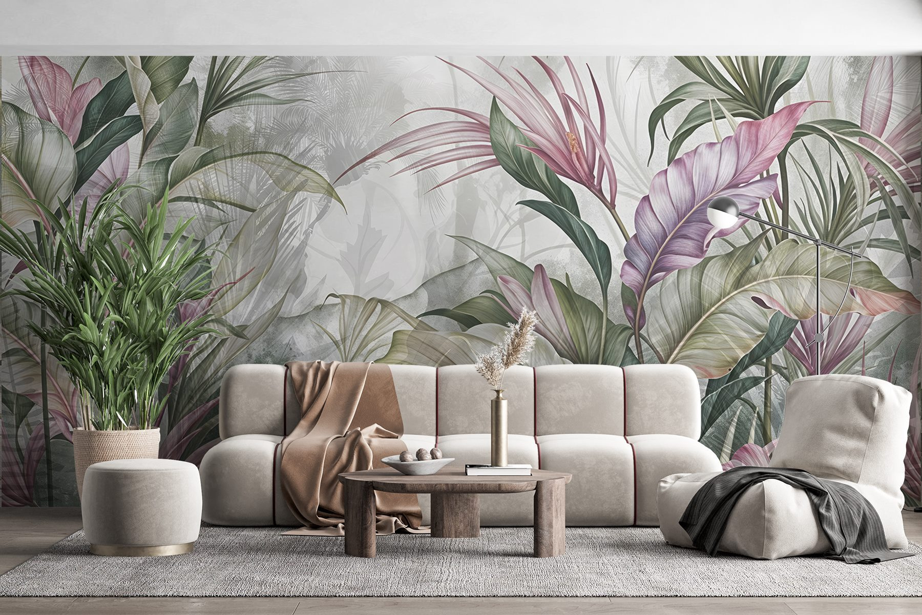 Przekształć dowolny pokój w spokojną tropikalną ucieczkę dzięki tej oszałamiającej fototapecie ściennej z kwiatami i liśćmi. Wyobraź sobie zanurzanie się w bujnej oazie za każdym razem, gdy przechodzisz obok – po prostu wyobraź sobie wylegiwanie się w wygodnym fotelu, popijając drinka i czując się jak na wakacjach na plaży. Miękkie zielenie i delikatne róże tworzą uspokajającą atmosferę, dzięki czemu idealnie nadaje się do salonu lub sypialni. Ponadto dodaje odrobinę natury bez konieczności posiadania zielonego kciuka! To nie tylko dekoracja ścienna; to codzienne przypomnienie, aby oddychać spokojnie i chłonąć dobre wibracje. Kto nie chciałby mieć małego kawałka raju w domu?