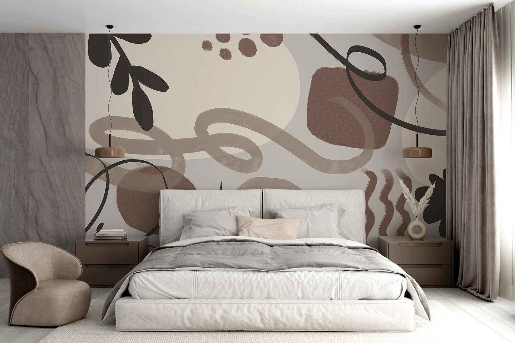 Przekształć zwykłą ścianę w przytulną przystań dzięki tej oszałamiającej fototapecie ściennej “Abstrakcyjne kształty w odcieniach ziemi”. Wyobraź sobie, że wchodzisz do pokoju, w którym miękkie brązy, kremowa biel i delikatna czerń tańczą razem, tworząc zachęcającą atmosferę. To jak ciepły uścisk dla twoich ścian. Idealna do chłodnego salonu lub inspirowanego zen miejsca pracy, ta fototapeta zachęca do “jeszcze tylko jednej filiżanki kawy”. Zabawne kształty i kojące kolory pobudzają kreatywność, sprawiając, że trudno nie marzyć. To sztuka ścienna, która mniej przypomina dekorację, a bardziej przyjaciela, na którym można się oprzeć!