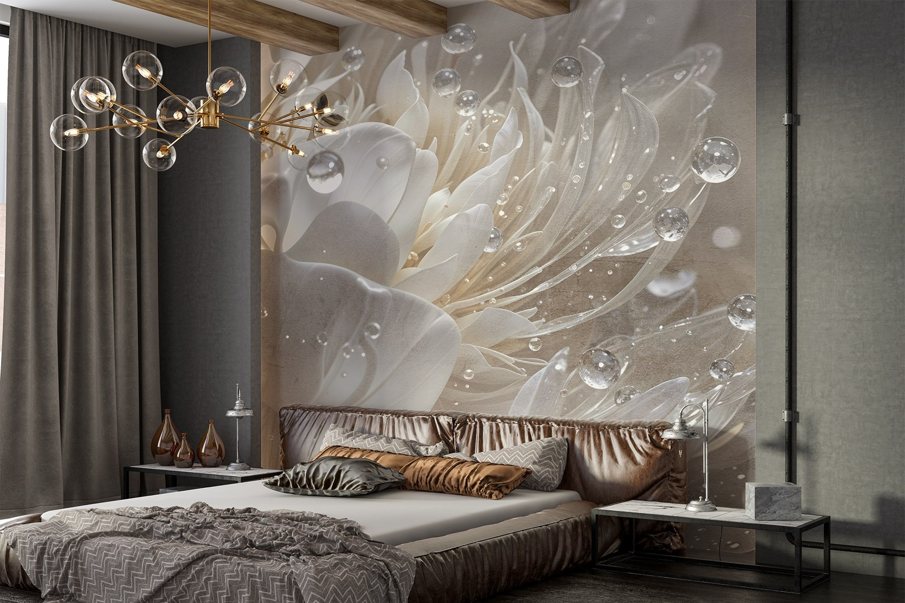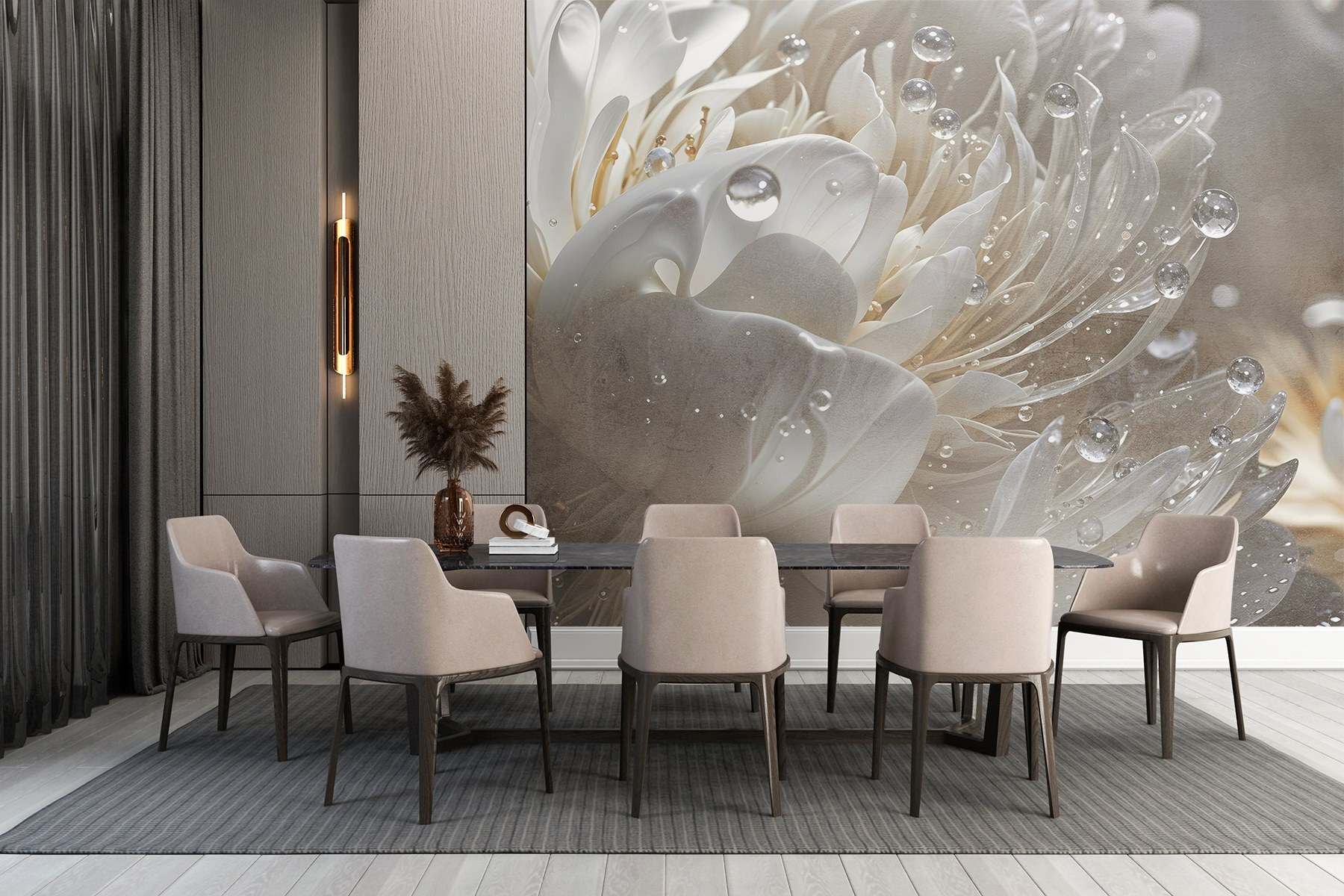 Przekształć swoją przestrzeń dzięki czarującej fototapecie “Delikatne płatki ozdobione kropelkami”. Wyobraź sobie, że każdego dnia budzisz się przy delikatnych szeptach natury na swojej ścianie. Miękkie płatki i błyszczące krople tworzą spokojną atmosferę, sprawiając, że każdy pokój poczuje się jak przytulny ogród. Wyobraź to sobie: popijając poranną kawę, podczas gdy światło słoneczne tańczy na tych przypominających rosę detalach – to idealne spokojne miejsce! Niezależnie od tego, czy jest to salon, czy cichy kącik do czytania, ta fototapeta dodaje odrobinę elegancji i spokoju. Kto mógłby się oprzeć? To jak zaproszenie odrobiny wiosny do domu przez cały rok. Dodatkowo, nie wymaga zielonego kciuka!